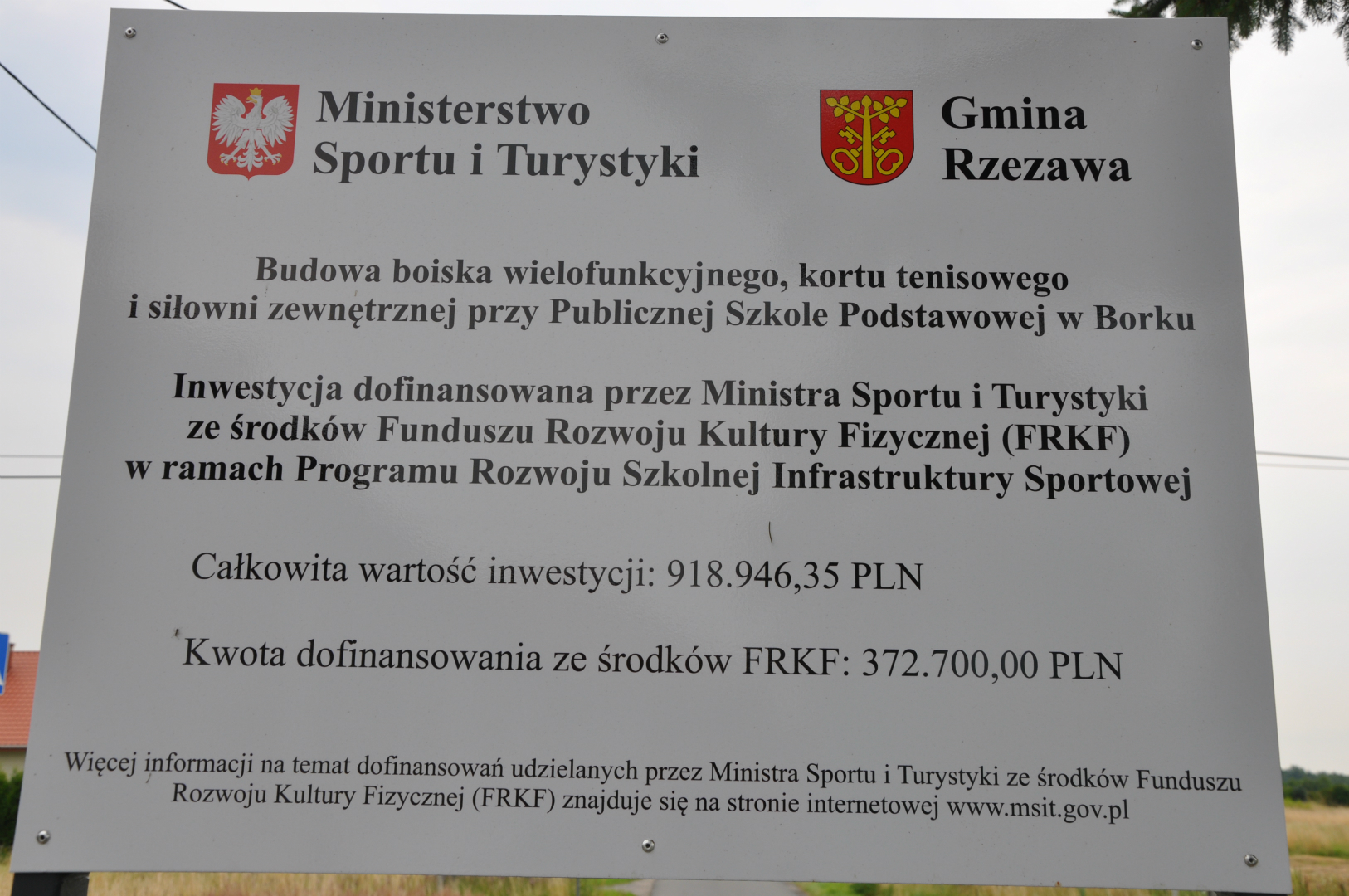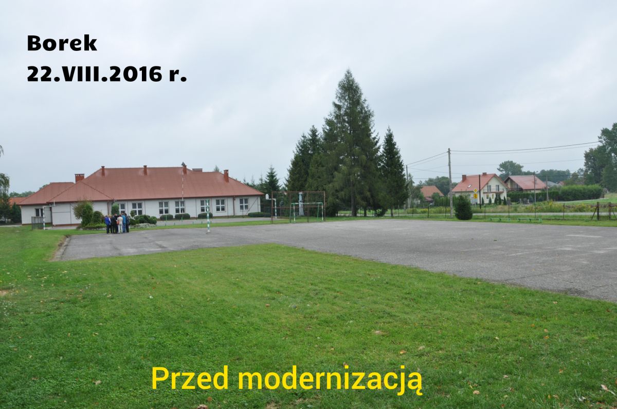 W ramach postępowania przetargowego procedowanego w 2016 roku najkorzystniejsze warunki współpracy zaproponowała firma „BUT – MAT” z Krynicy Zdroju. To właśnie z tą firmą, pod koniec sierpnia 2016 roku, Wójt Gminy Rzezawa podpisał umowę na zagospodarowanie terenu przy szkole w Borku, zaś w dwa miesiące później Gminie Rzezawa zostały przyznane na ten cel środki z Ministerstwa Sportu i Turystyki.