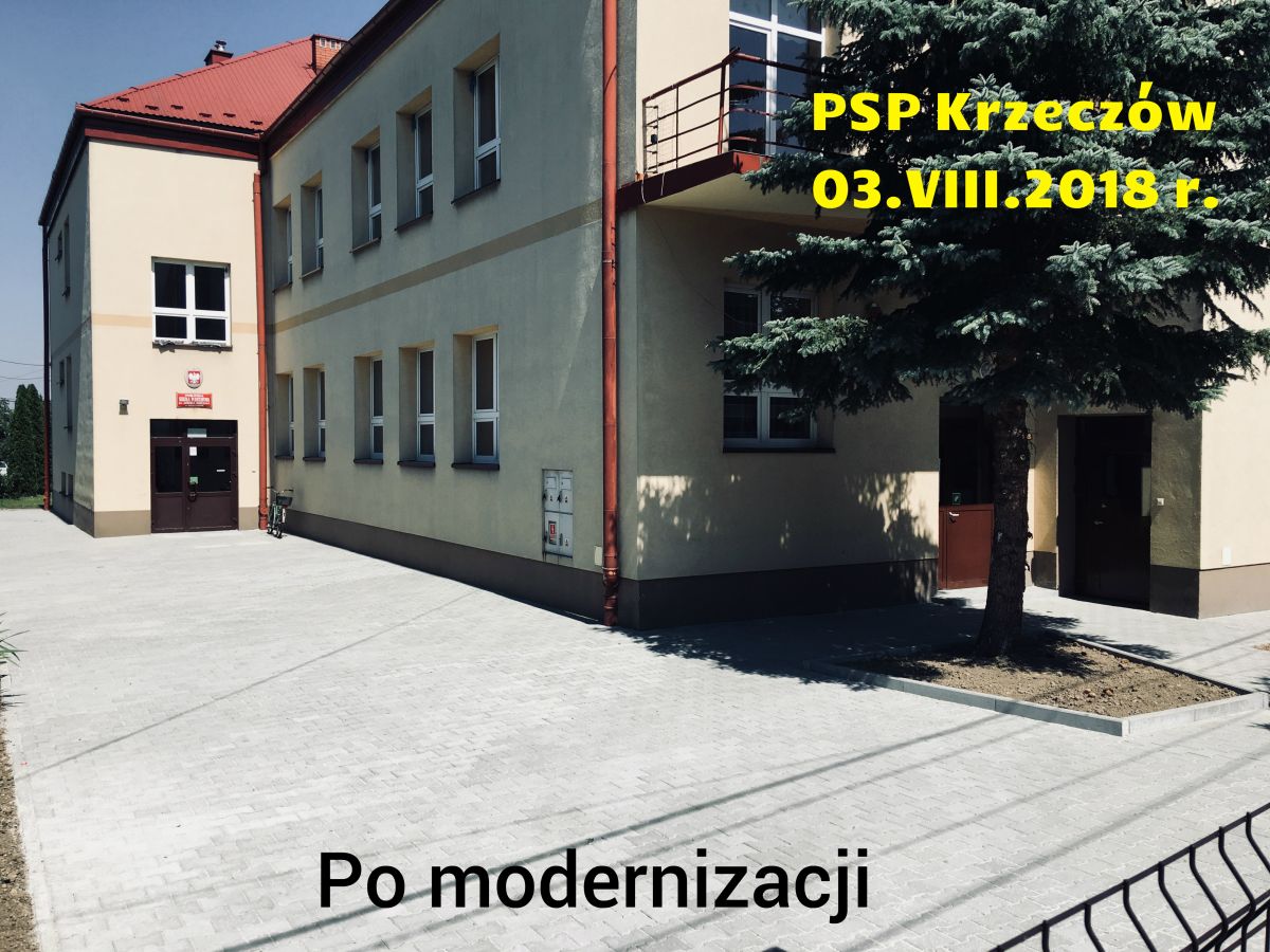 Przy szkole podstawowej i przedszkolu w Krzeczowie powstał nowy parking. Zmodernizowano także wejście do budynku. Dzięki tej inwestycji poprawi się komfort zarówno uczniów i nauczycieli, jak i rodziców, którzy dowożą swoje dzieci na lekcje. Sam budynek zyskał natomiast estetyczne otoczenie.