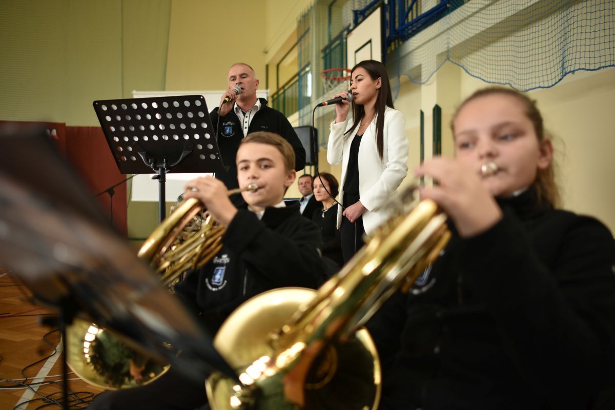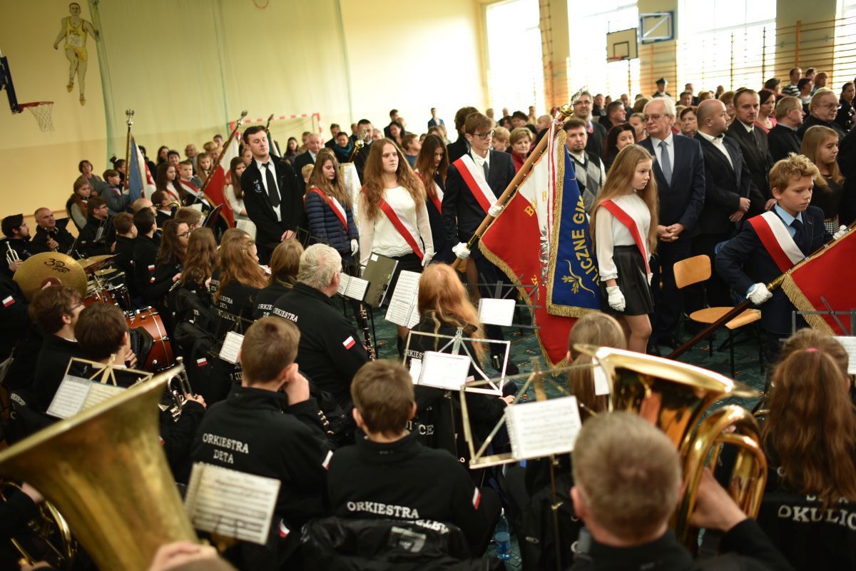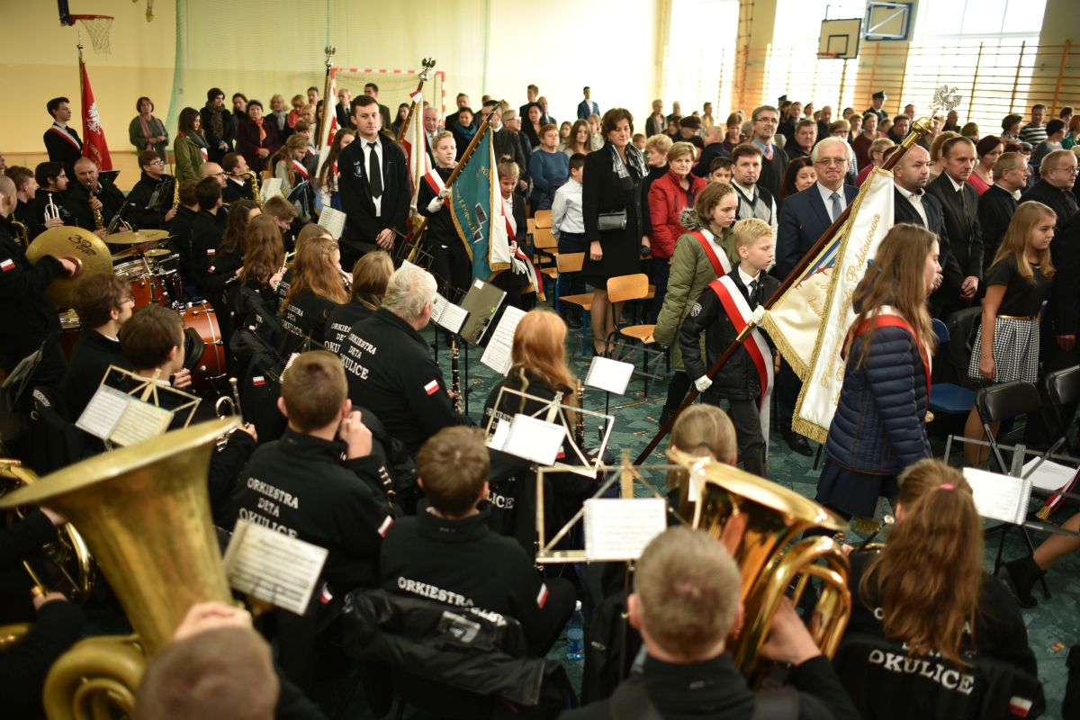 Tegoroczne obchody Narodowego Święta Niepodległości w Gminie Rzezawa rozpoczęły się od uroczystej Mszy Świętej w intencji Ojczyzny, która została odprawiona w kościele p.w. Świętej Trójcy i św. Leopolda w Rzezawie pod przewodnictwem księdza proboszcza Tadeusza Kubali. Po zakończeniu tej części uroczystości władze samorządowe, delegacje szkół i jednostek OSP wraz z pocztami sztandarowymi, a także przybyli mieszkańcy przy akompaniamencie Orkiestry Dętej z Okulic przemaszerowali do budynku Publicznego Gimnazjum w Rzezawie. Po oficjalnym przywitaniu gości głos zabrał Wójt Gminy Rzezawa Pan Mariusz Palej, który w swoim przemówieniu podkreślił wagę wydarzeń upamiętniających odzyskania przez Polskę niepodległości. Następnie swój program słowno-muzyczny zaprezentowali artyści Koła Młodych Twórców działający przy Publicznym Gimnazjum, którego opiekunem jest P. Zofia Łęczek. Na zakończenie Orkiestra Dęta z Okulic odegrała okolicznościowy koncert o zróżnicowanym repertuarze pieśni patriotycznych