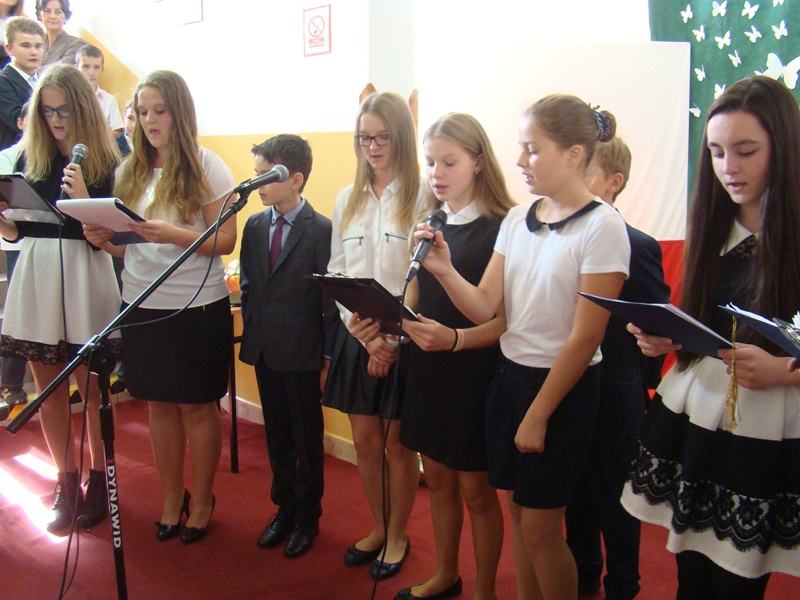 Był to szczególny czas, ponieważ do grona uczniów przyjmowaliśmy klasę pierwszą szkoły podstawowej i gimnazjum. Ślubowanie dzieci i młodzieży przebiegało w przyjaznej i miłej atmosferze, a zadbały o to panie z nauczania początkowego: M. Płaneta i J.Byrka – Dziedzic, Iwona Rogowska, wychowawczyni klasy drugiej gimnazjum – B. Piekarz. Pięknym wierszom, wspaniałym scenkom oraz ciekawym konkursom nie było końca.