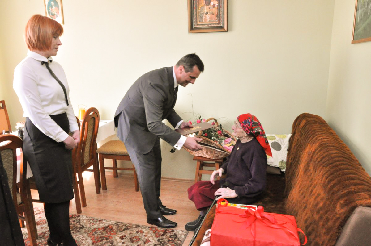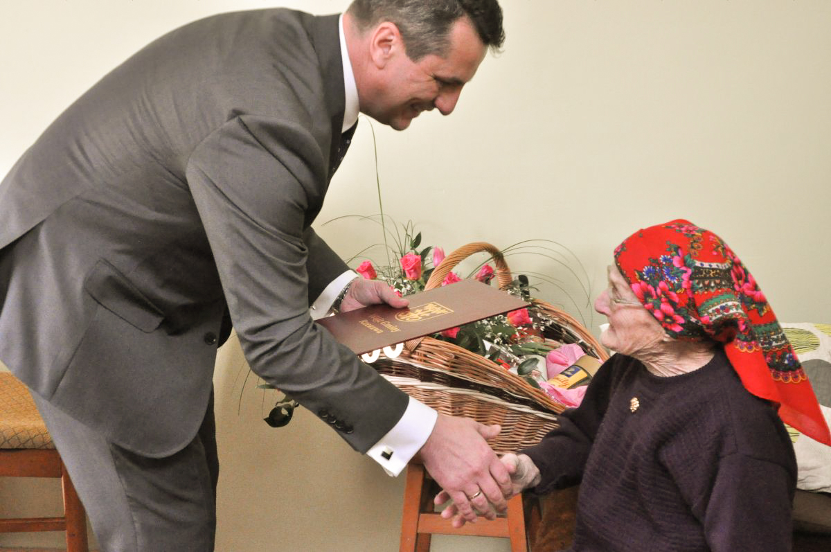 W tym szczególnym dniu Wójt Gminy Rzezawa złożył Dostojnej Jubilatce w imieniu własnym oraz całej społeczności gminy gratulacje i życzenia zdrowia oraz wszelkiej pomyślności na kolejne lata. Wręczył kwiaty, upominek oraz okolicznościowy list gratulacyjny. Przekazał również życzenia przesłane przez Prezesa Rady Ministrów Panią Beatę Szydło oraz Wojewodę Małopolskiego Pana Józefa Pilcha po czym wzniesiono toast za zdrowie Jubilatki.