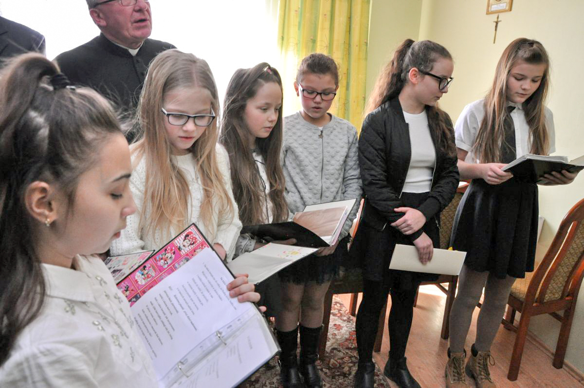 ks. Kazimierz Świętek, przedstawiciel Parafialnej Rady Duszpasterskiej Pan Ireneusz Czesak, lekarz rodzinny Pan Zdzisław Gach, dzieci z Publicznej Szkoły Podstawowej w Borku oraz liczna rodzina.