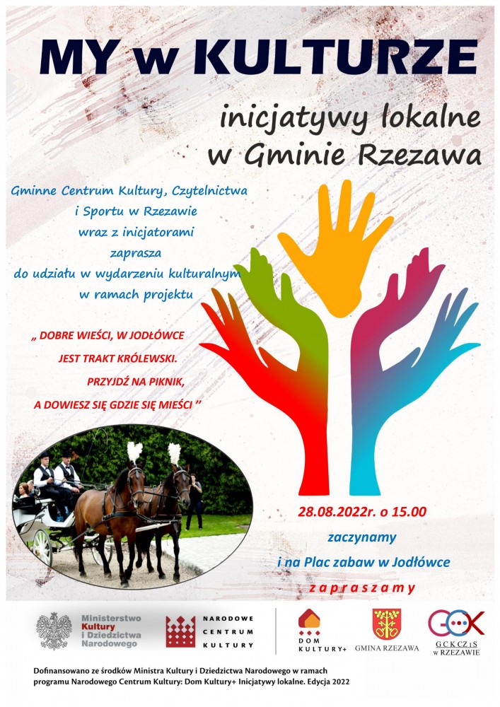 Gminne Centrum Kultury, Czytelnictwa i Sportu w Rzezawie wraz z inicjatorami zaprasza 28 sierpnia 2022r. na godz. 15.00 do Jodłówki na piknik historyczny ,, Dobre wieści, w Jodłówce jest trakt królewski. Przyjdź na piknik, a dowiesz się gdzie się mieści’’, realizowany w ramach projektu MY w KULTURZE – inicjatywy lokalne w Gminie Rzezawa.