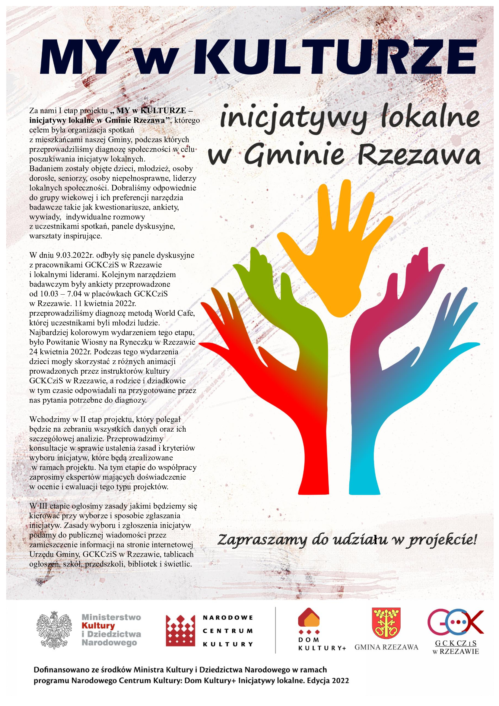 Podsumowanie I etapu projektu ,,MY w KULTURZE - inicjatywy lokalne w Gminie Rzezawa''