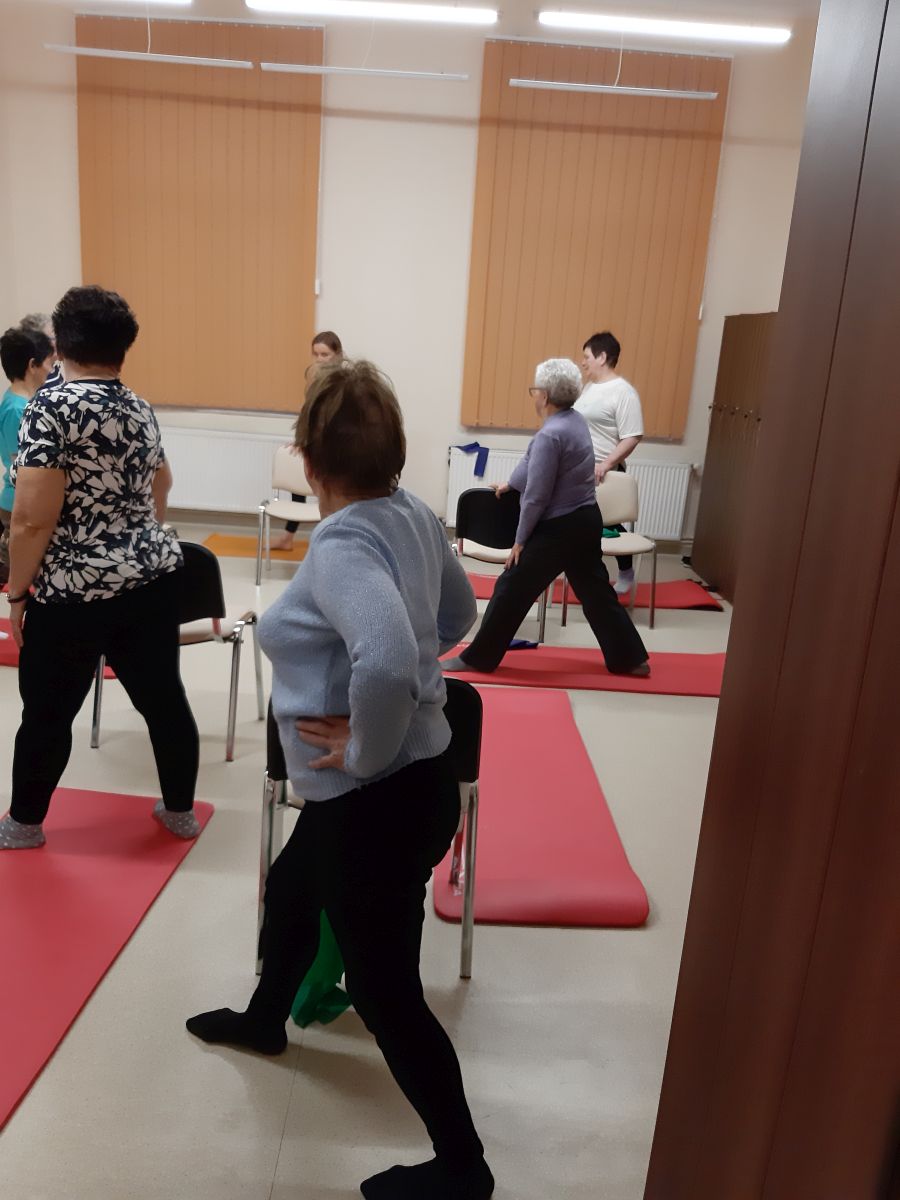 ✔ Zajęcia sportowo ruchowe takie jak: pilates, nordic walking, aerobik oraz gimnastyka ogólnosprawnościowa. Zajęcia miały charakter cykliczny, jak również miały na celu motywowanie Seniorów do aktywności ruchowej. Rodzaj tej aktywności ma pozytywny wpływ na samopoczucie oraz kondycję fizyczną naszych Uczestników. Przyczyniły się one również do podniesienia świadomości na temat możliwości aktywnego spędzania czasu. Seniorzy otrzymali wskazówki, jak dbać o własne ciało i poprawiać zdolności fizyczne organizmu, jak postępować podczas upałów, a także jak wzmocnić jego odporność. Prowadzone zajęcia pozytywnie wpłynęły na utrzymanie zdolności samodzielnego funkcjonowania w zakresie podstawowych czynności życia codziennego. Seniorzy, spośród katalogu zajęć mieli również możliwość skorzystania ze sprzętu rehabilitacyjnego zgodnie z indywidualnymi potrzebami. Do dyspozycji naszych Seniorów były między innymi: rowerki, orbitreki, piłki do ćwiczeń, maty, gumy itp.
