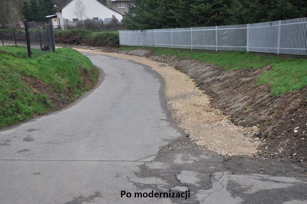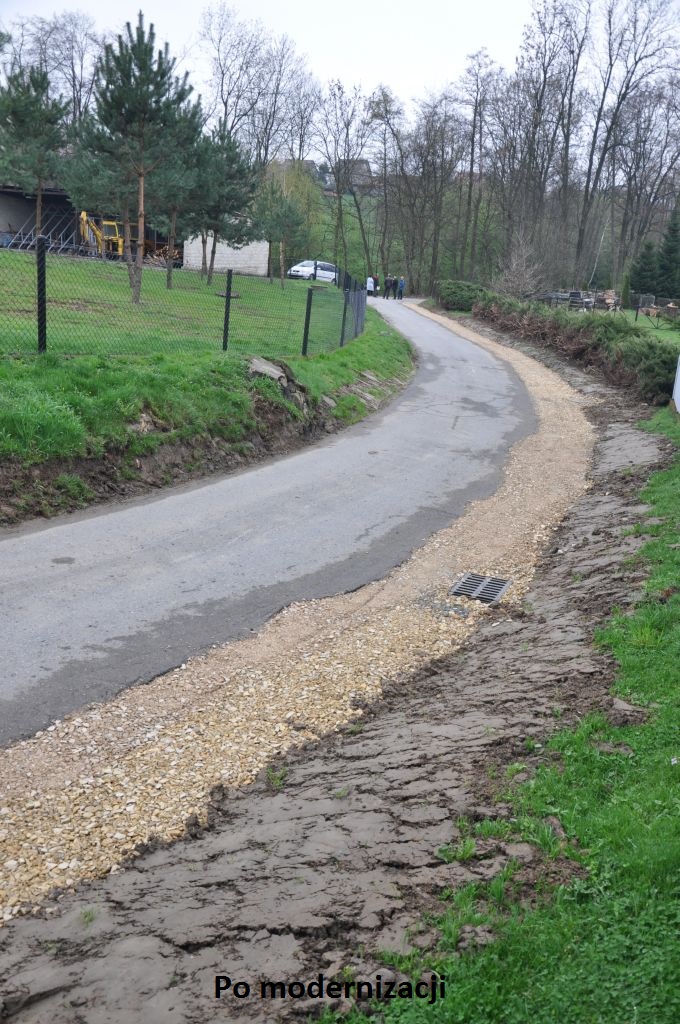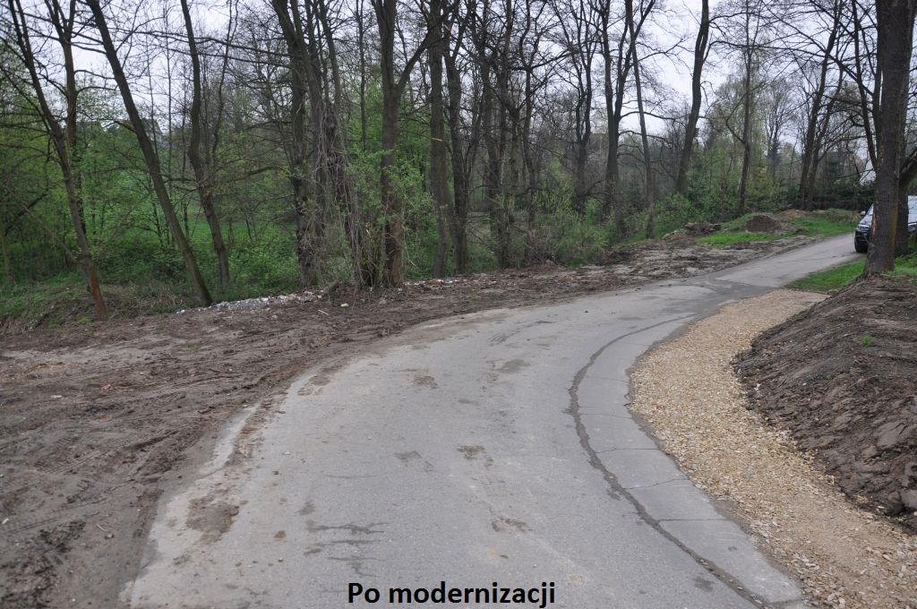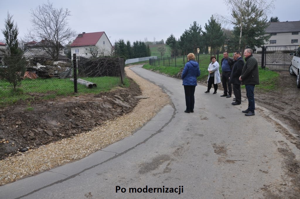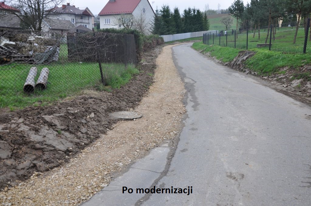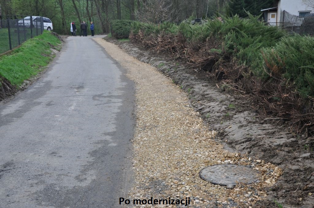 Wychodząc naprzeciw oczekiwaniom mieszkańców, którzy wnioskowali na zebraniu wiejskim o wykonanie poszerzenia drogi gminnej w miejscowości Łazy, 12 kwietnia 2016 roku zostało odebrane zadanie pn. „Poszerzenie drogi gminnej oznaczonej jako działka nr 225 w Łazach”. Takie działanie przyczyni się do poprawy i zwiększenia bezpieczeństwa uczestników korzystających z drogi. Całkowity koszt wykonania poszerzenia drogi wyniósł 28 589,05 zł. W ramach prac został wykonany kryty rów z czterema studniami rewizyjnymi, który następnie został utwardzony kruszywem. Dzięki temu uzyskano poszerzenie drogi.