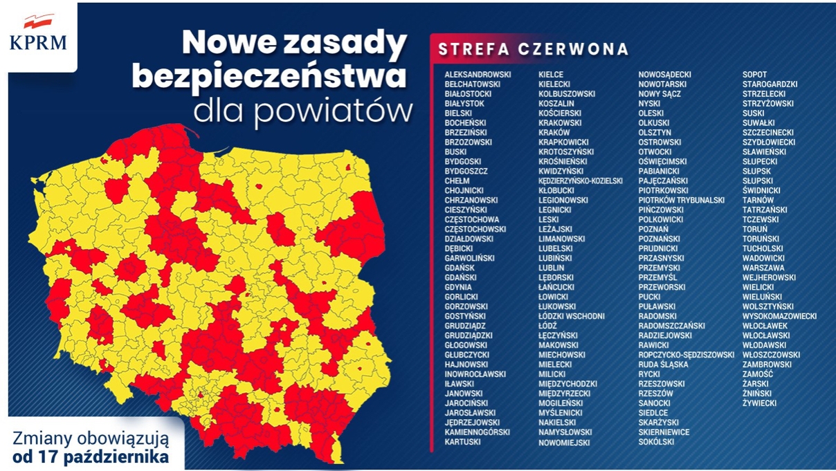 Od soboty 17 października w całym kraju obowiązywać będą nowe zasady bezpieczeństwa. W związku z dynamicznym wzrostem zakażeń i zachorowań wywołanych wirusem SARS-CoV-2 powiat bocheński trafił do czerwonej strefy.