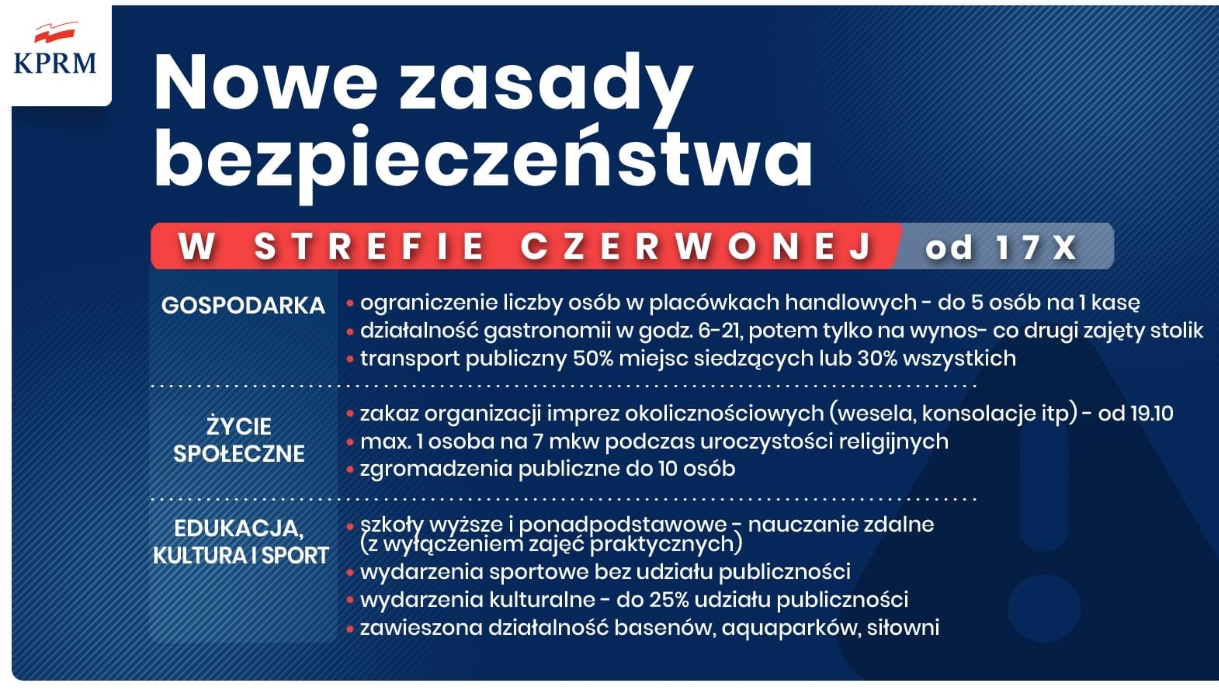 W strefie czerwonej, w której znalazł się powiat bocheński, od 17 października br. obowiązują następujące zasady: