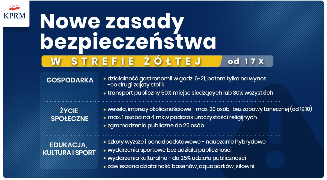 - od 19.10 – zakaz organizacji imprez okolicznościowych (wesela, konsolacje i inne);