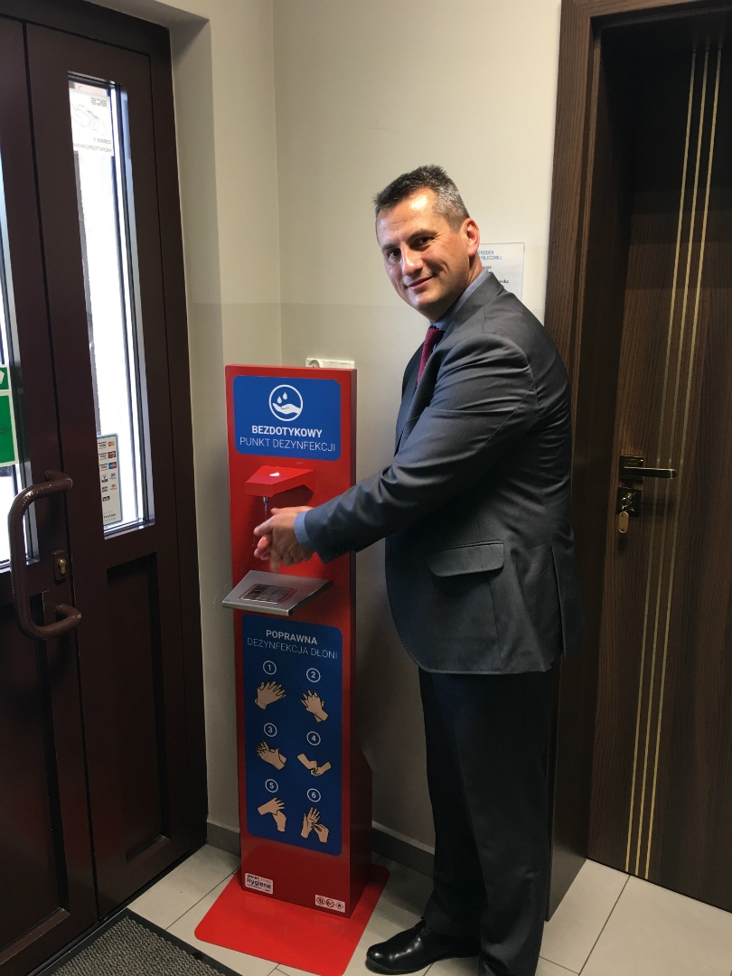 Profesjonalny dozownik do dezynfekcji w rzezawskim urzędzie