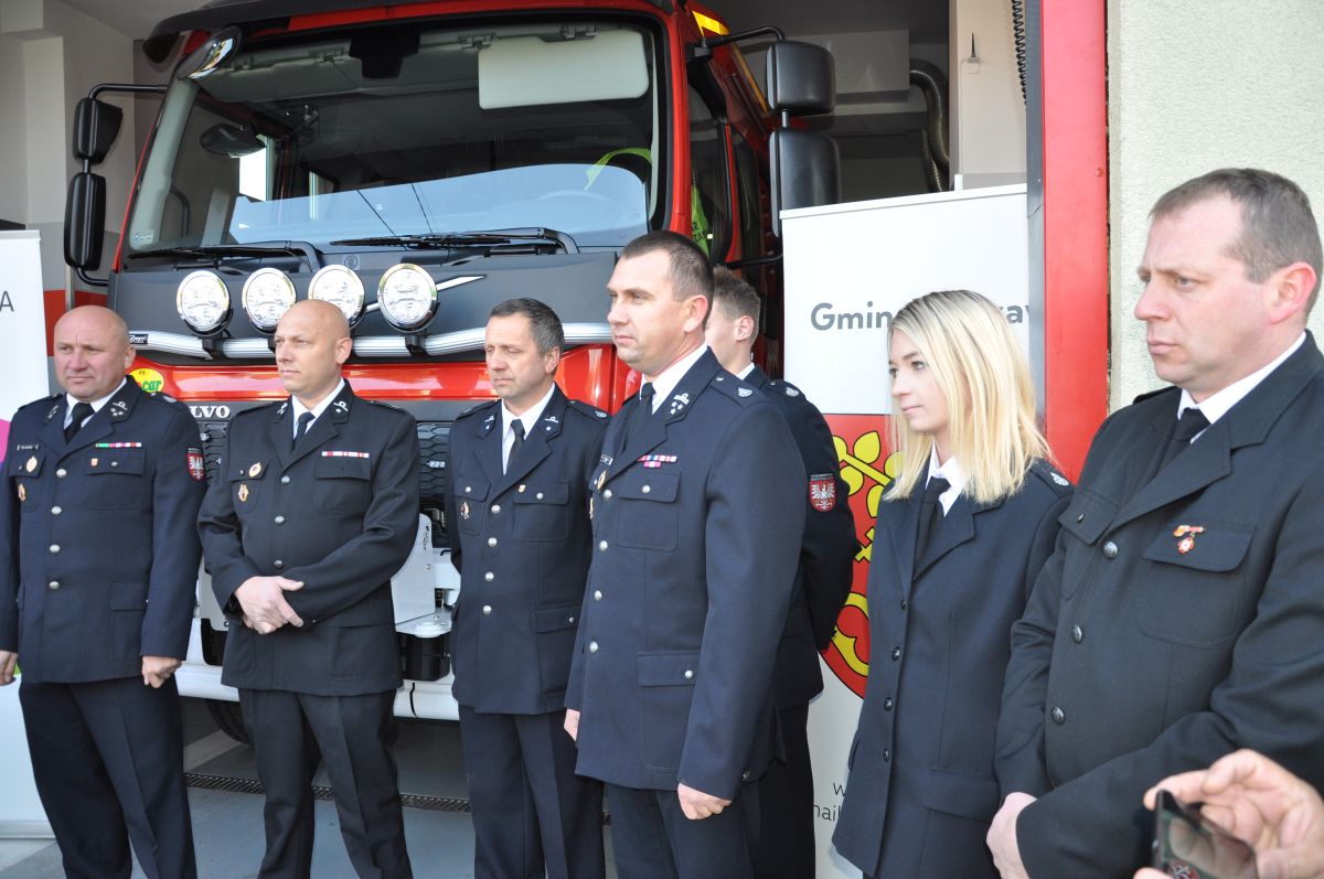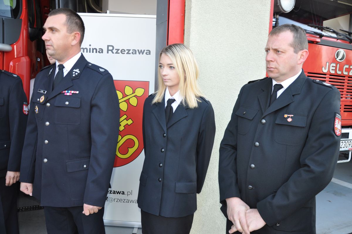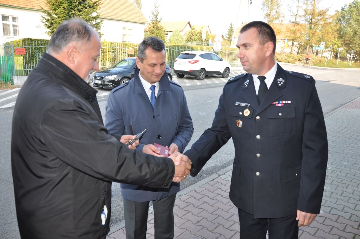 Symboliczne przekazanie kluczy i dokumentów do nowego wozu strażackiego miało miejsce przed remizą Ochotniczej Straży Pożarnej w Rzezawie.