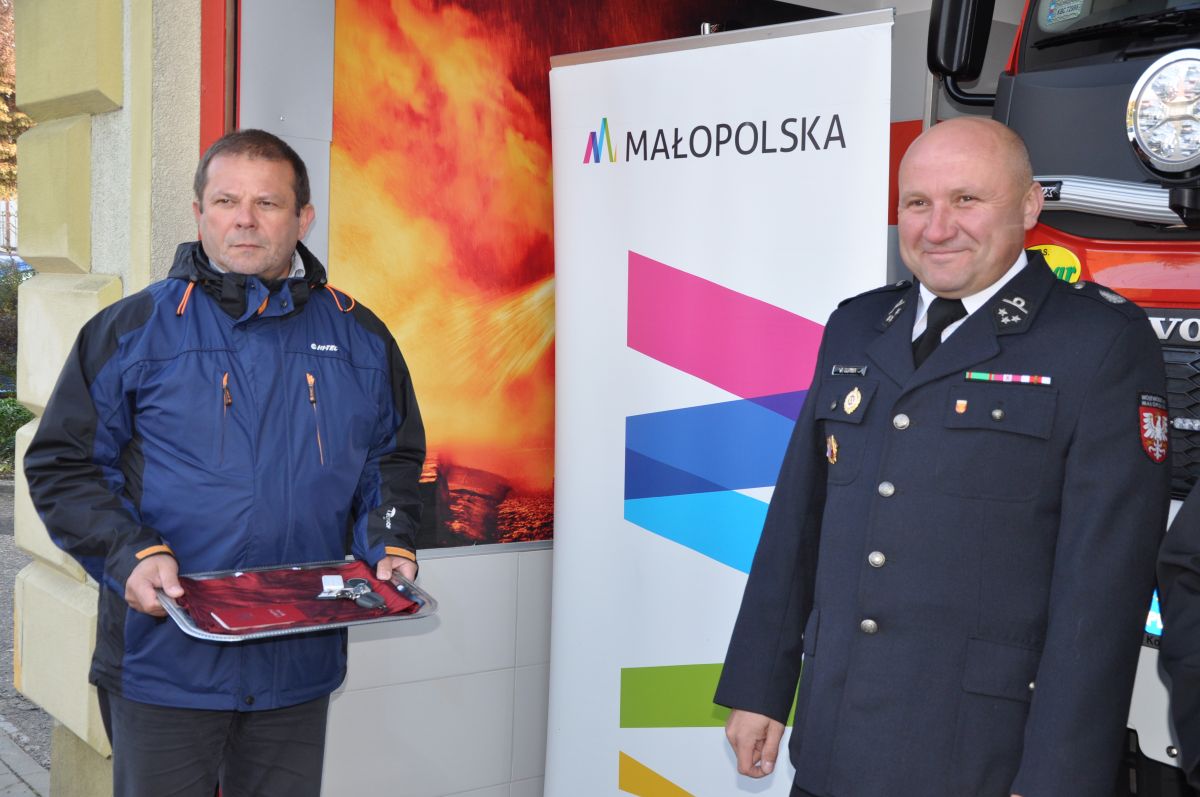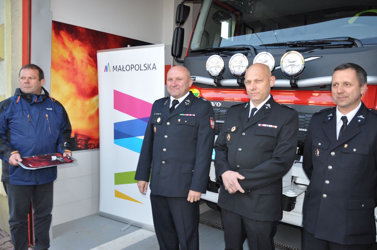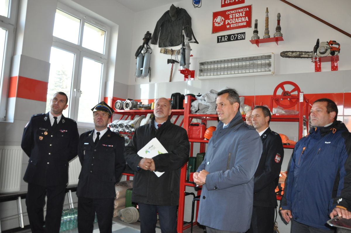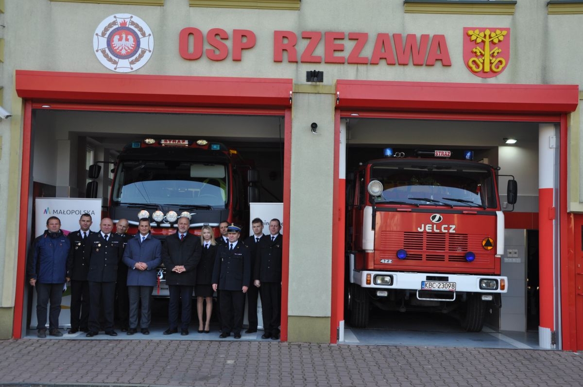 W czwartek, 31 października, odbyła się symboliczna uroczystość przekazania strażakom kluczy oraz dokumentów do nowego samochodu ratowniczo – gaśniczego, który niedawno trafił do OSP Rzezawa. W uroczystości wzięli udział: Wójt Gminy Rzezawa Mariusz Palej, Prezes Wojewódzkiego Funduszu Ochrony Środowiska i Gospodarki Wodnej w Krakowie Kazimierz Koprowski, Komendant Powiatowy Państwowej Straży Pożarnej w Bochni mł. bryg. Robert Cieśla oraz Strażacy OSP w Rzezawie na czele z Prezesem Jednostki i jednocześnie Komendantem Gminnym OSP Leszkiem Trąbą.