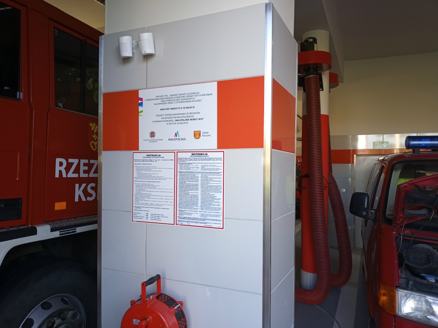 W ramach tego zadania nastąpił kompleksowy remont garażu głównego budynku remizy. Zostały tam m.in. wymalowane i oblicowane ściany. Wymienione zostały również bramy wjazdowe. Remont objął także instalacje wewnętrzne. Wyremontowane zostało ponadto pomieszczenie sanitarne. Strażacy z własnej inicjatywy wykonali natomiast m.in. nowe szafki do szatni. – Strażacy są wspaniałą wizytówką naszej gminy. Zawsze można na nich liczyć. Dlatego bardzo się cieszę, że przeprowadzony remont przyczyni się do zwiększenia ich komfortu pracy – mówi Wójt Gminy Rzezawa Mariusz Palej.