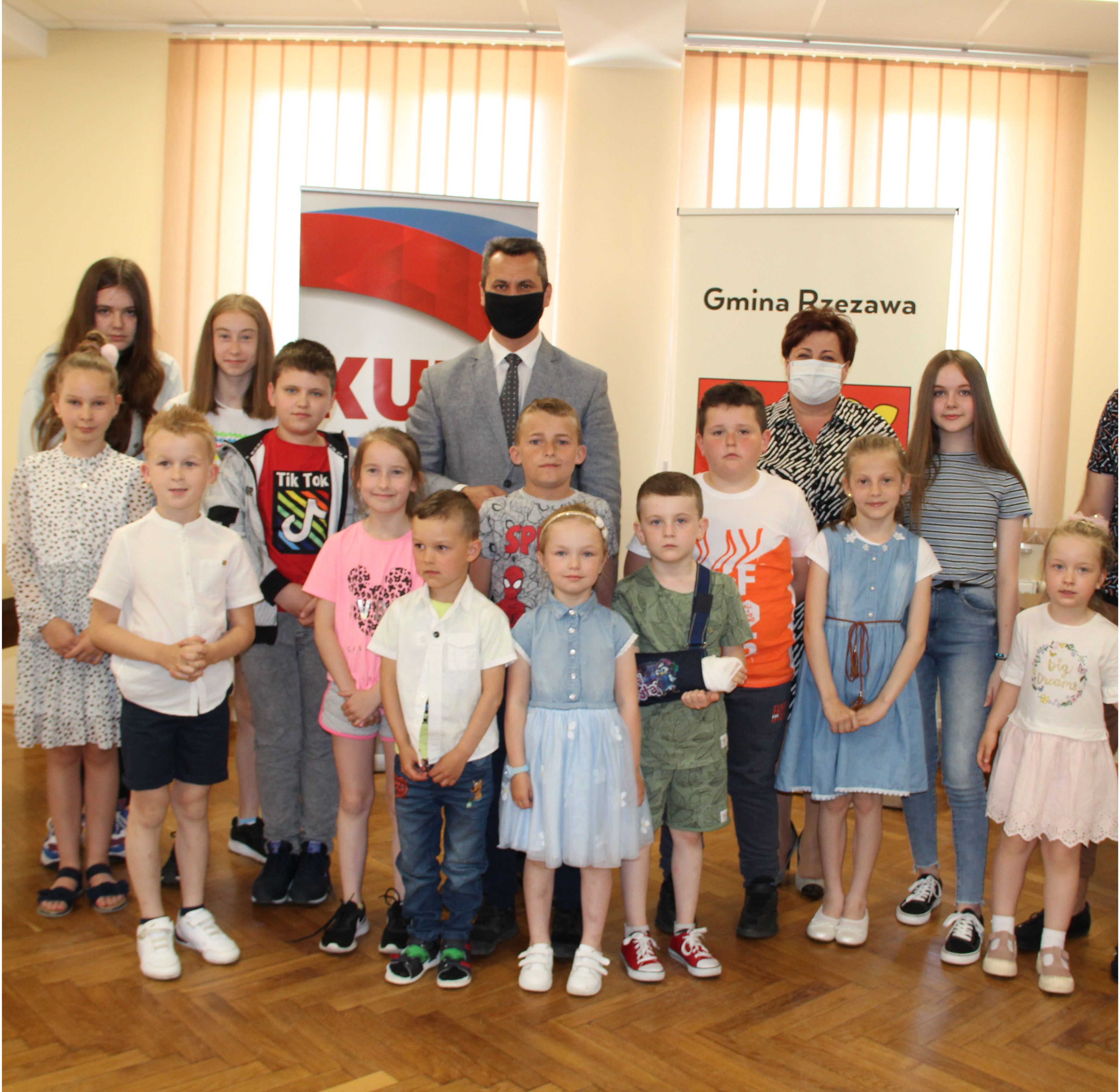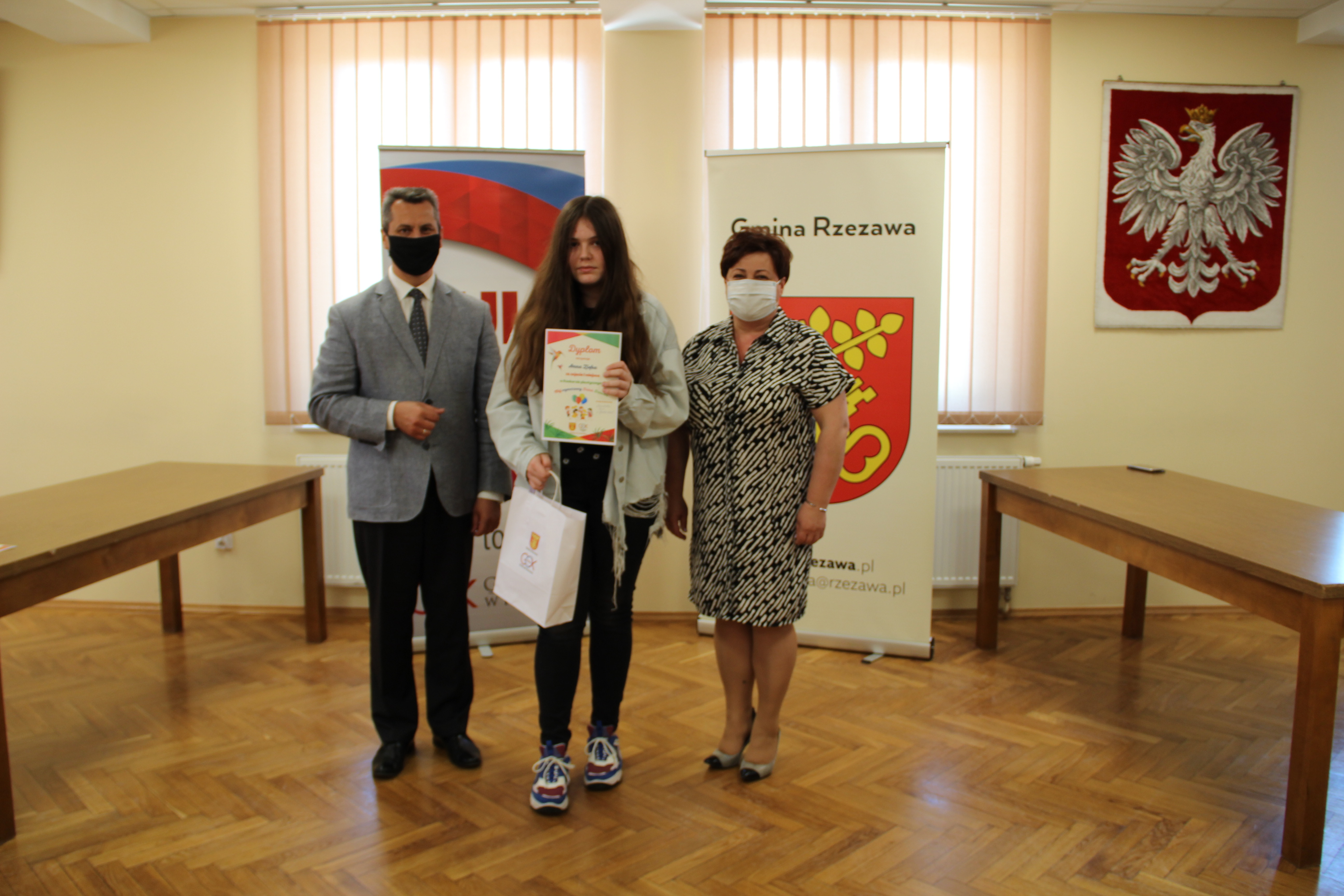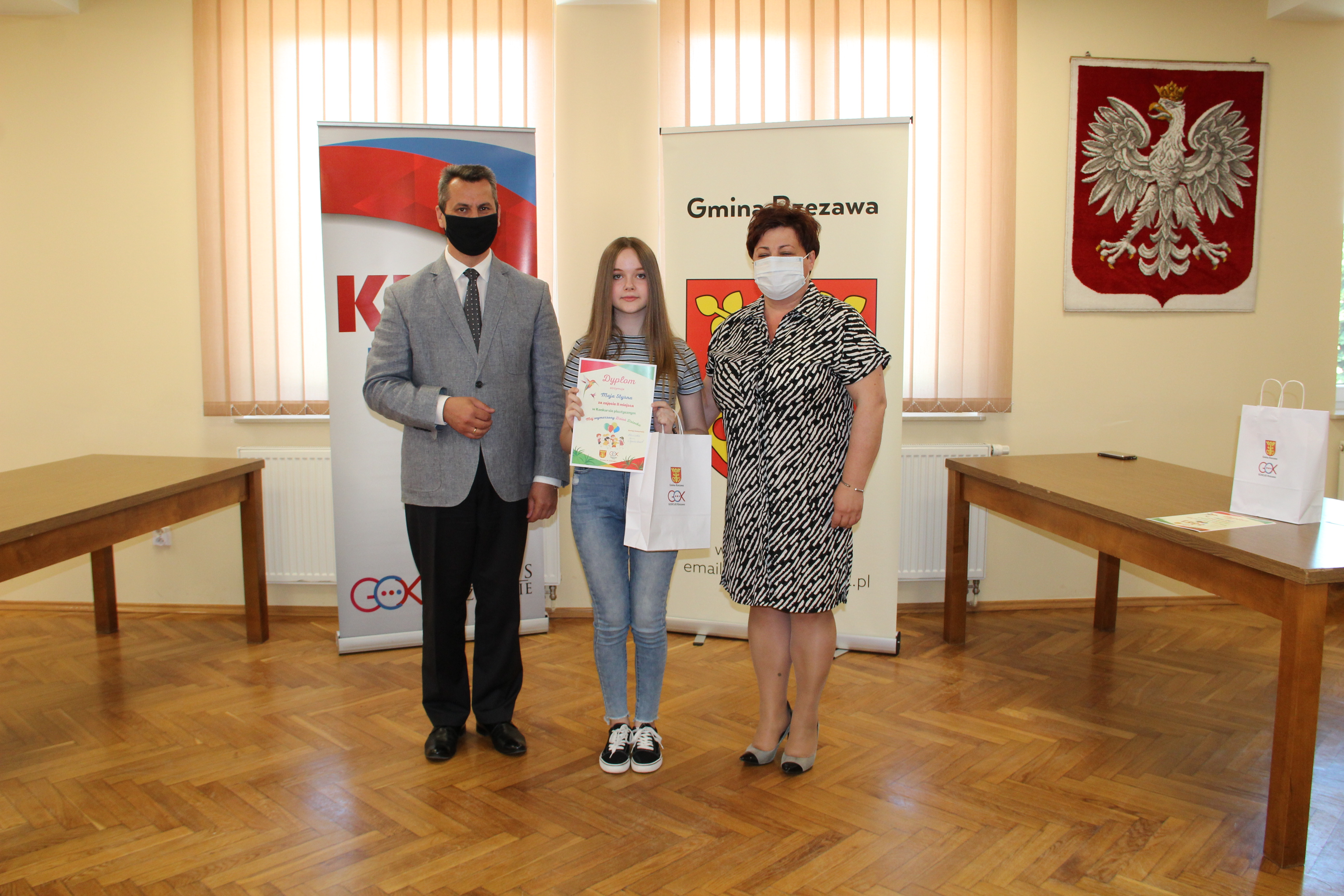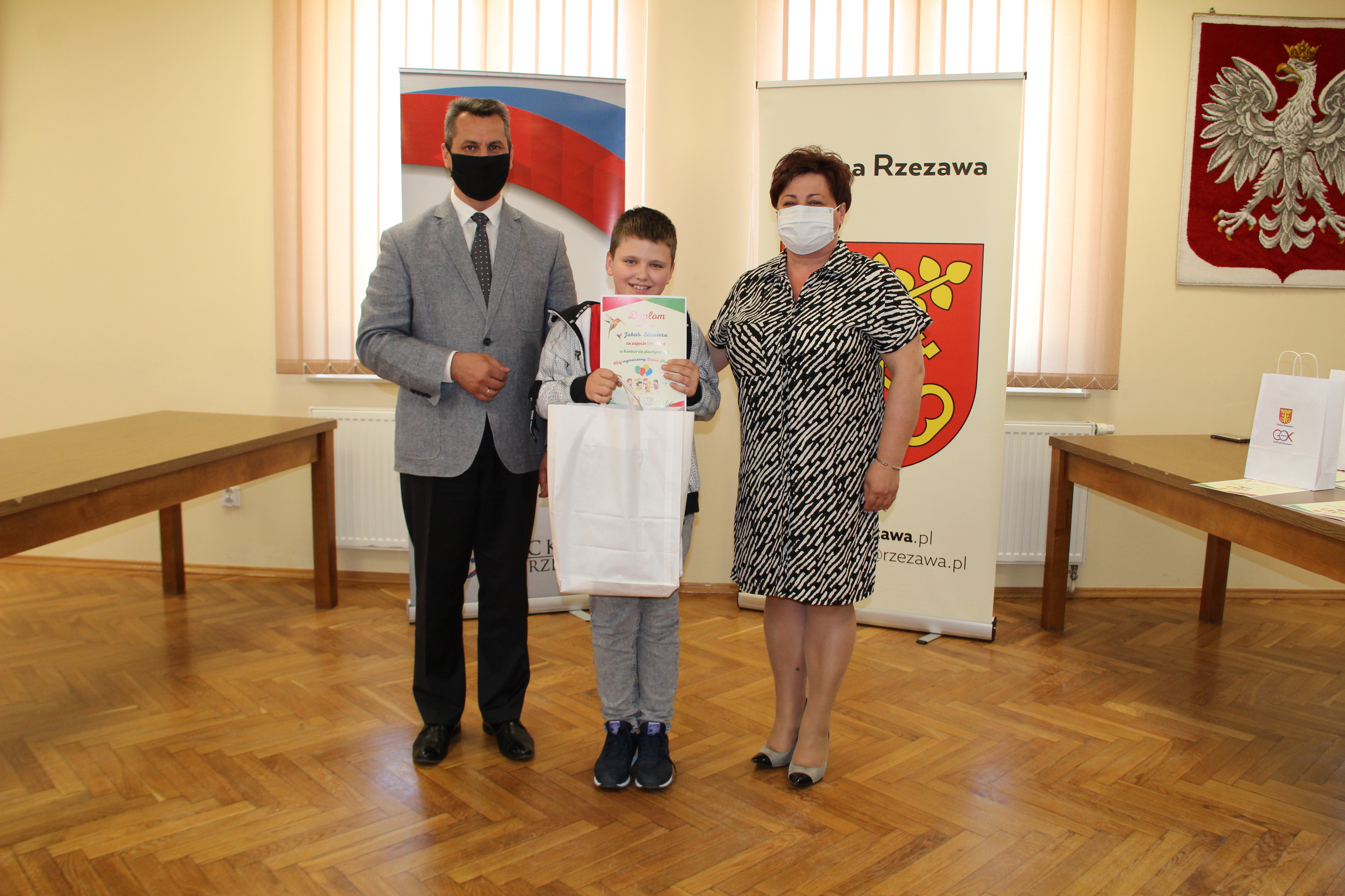 Wręczenie nagród laureatom Konkursu Mój wymarzony Dzień Dziecka odbyło się w piątek 4 czerwca 2021r. Nagrody i dyplomy wręczył Wójt Gminy Rzezawa – Mariusz Palej i Dyrektor Gminnego Centrum Kultury, Czytelnictwa i Sportu w Rzezawie - Renata Prokop.