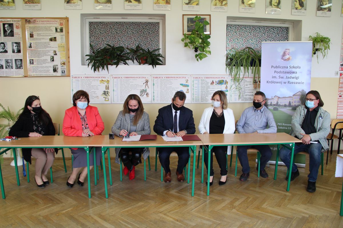 Podpisanie umowy przez Wójta Gminy Rzezawa Mariusza Paleja na utworzenie kuchni wraz z jadalnią odbyło się 6 maja br. w siedzibie Publicznej Szkoły Podstawowej im. Świętej Jadwigi Królowej w Rzezawie. Inwestycja ma zostać zrealizowana w ciągu 180 dni.