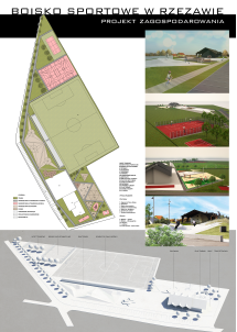 W ramach projektu wykonane zostanie pełnowymiarowe boisko sportowe trawiaste do piłki nożnej wraz z oświetleniem, trybunami o powierzchni płyty boiska 76*110 m oraz budowa boiska wielofunkcyjnego z nawierzchnią poliuretanową wraz z oświetleniem o wymiarach płyty 30*44 m przy ul. Wiśniowej w Rzezawie. Boisko wielofunkcyjne będzie składać się z dwóch boisk do koszykówki, do piłki ręcznej i nożnej oraz do piłki siatkowej.