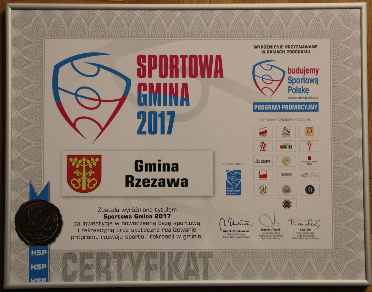 W siedzibie Polskiego Komitetu Olimpijskiego w Warszawie odbyła się 25 października 2017 roku gala ”Sportowa Polska 2017”. Klub Sportowa Polska wyróżnił 30 gmin w skali kraju działających na rzecz rozwoju infrastruktury sportowej i krzewienia sportu wśród dzieci, młodzieży i społeczności lokalnej. Gmina Rzezawa jako jedna z 4 gmin w województwie małopolskim otrzymała wyróżnienie w kategorii „Sportowa Gmina 2017”.