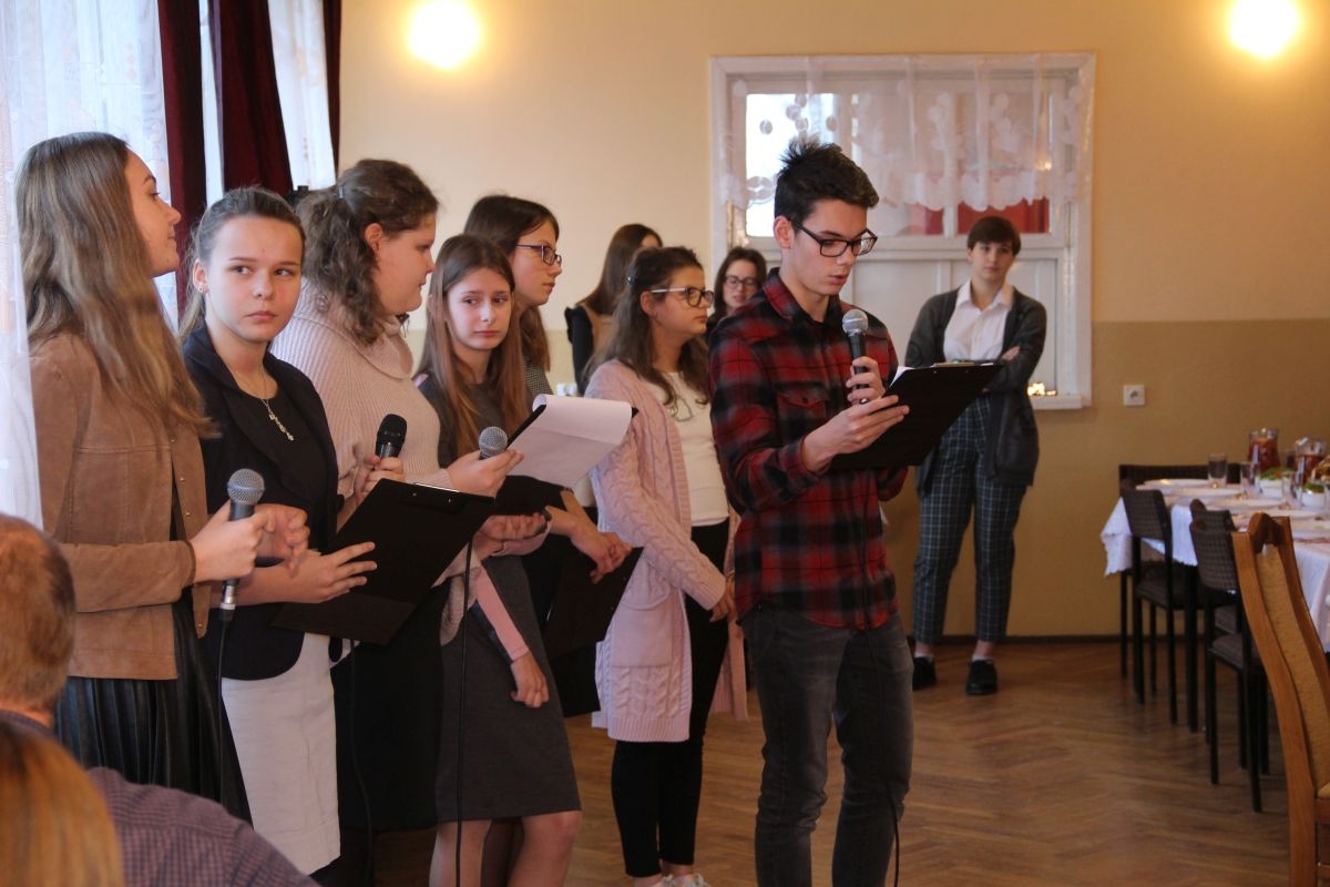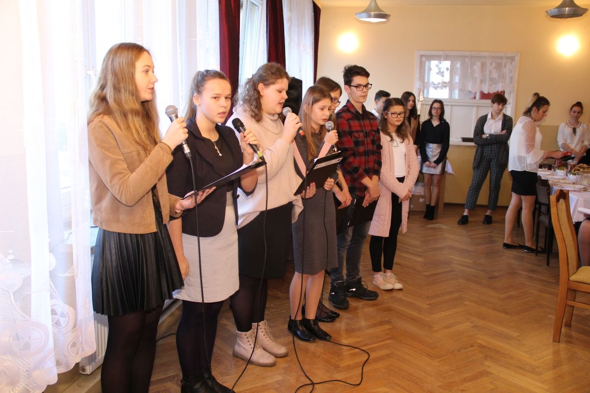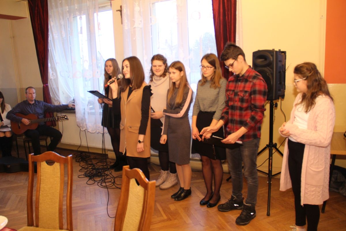 W świąteczny nastrój kolędowania, wszystkich zebranych przy stole, wprowadził występ uczniów z Publicznej Szkoły Podstawowej im. św. Jadwigi Królowej w Rzezawie, przygotowany pod kierunkiem Pana Pawła Lekkiego i Pani Edyty Lesiewicz.
