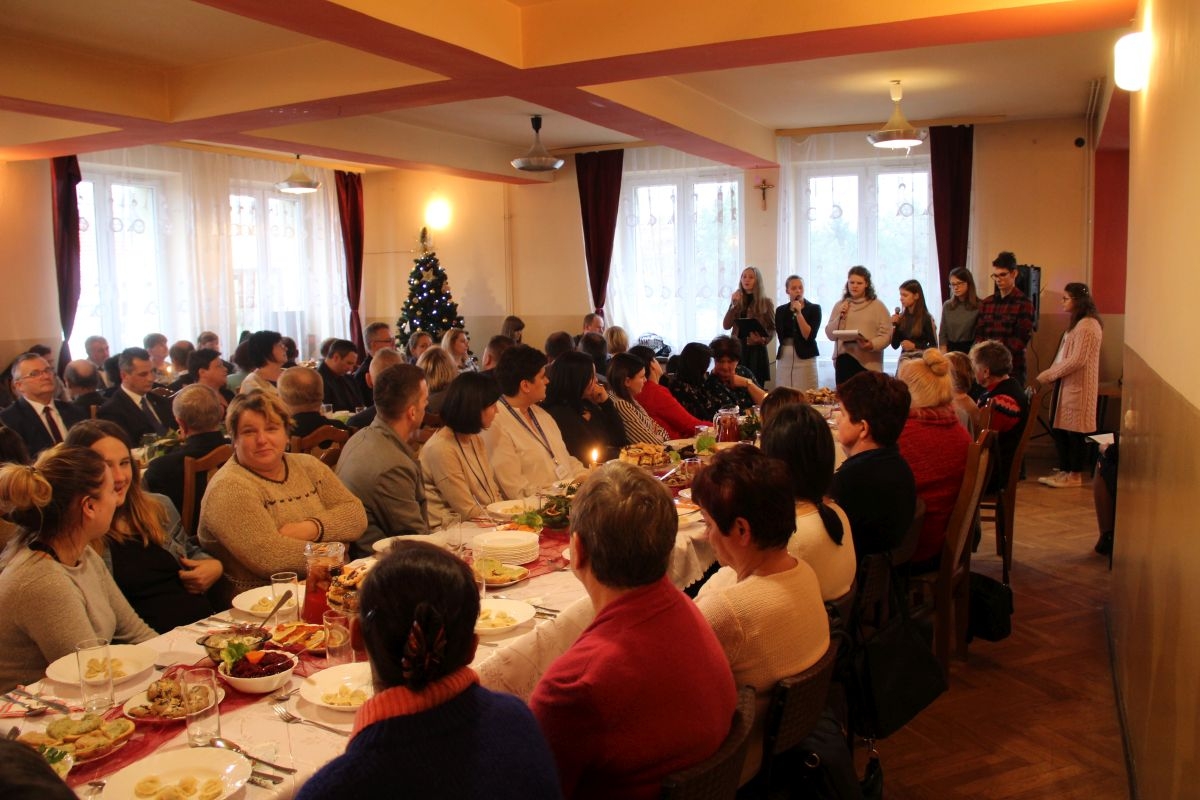 Po wspólnym połamaniu się opłatkiem i wymianie życzeń wszyscy zasiedli do Wieczerzy Wigilijnej. Spędzony wspólnie czas był okazją do nawiązania nowych, czasem sąsiedzkich relacji i uświadomienia sobie, że pomimo przeciwności losu nie jesteśmy sami, bo jesteśmy społecznością.