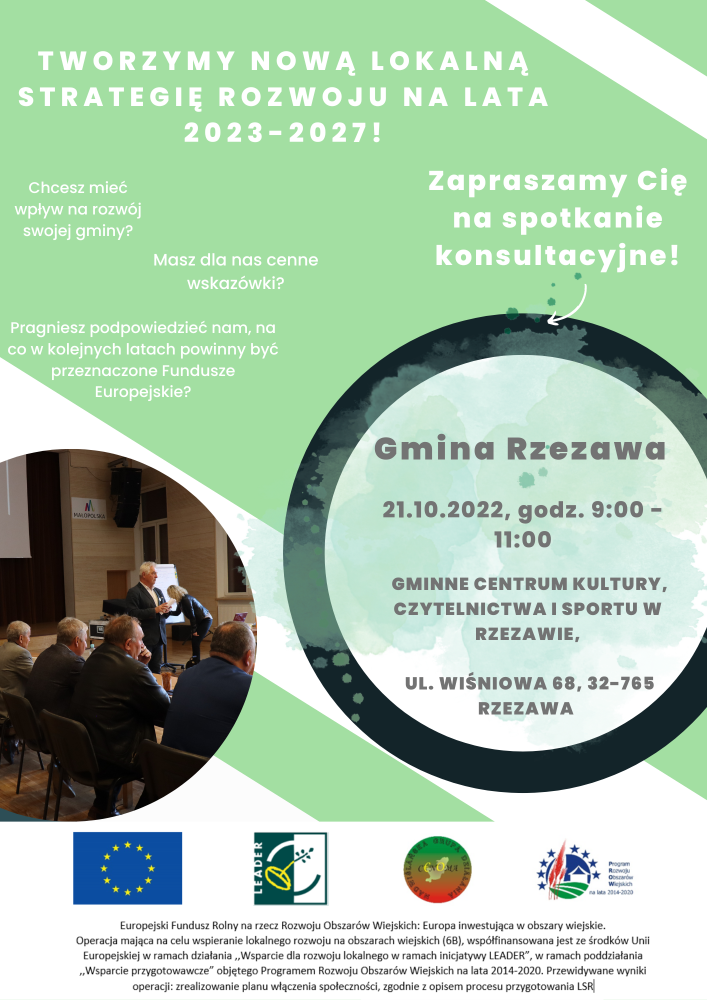Spotkanie odbędzie się w dniu 21.10.2022 w Gminnym Centrum Kultury Czytelnictwa i Sportu w Rzezawie, od godz. 9:00-11:00.