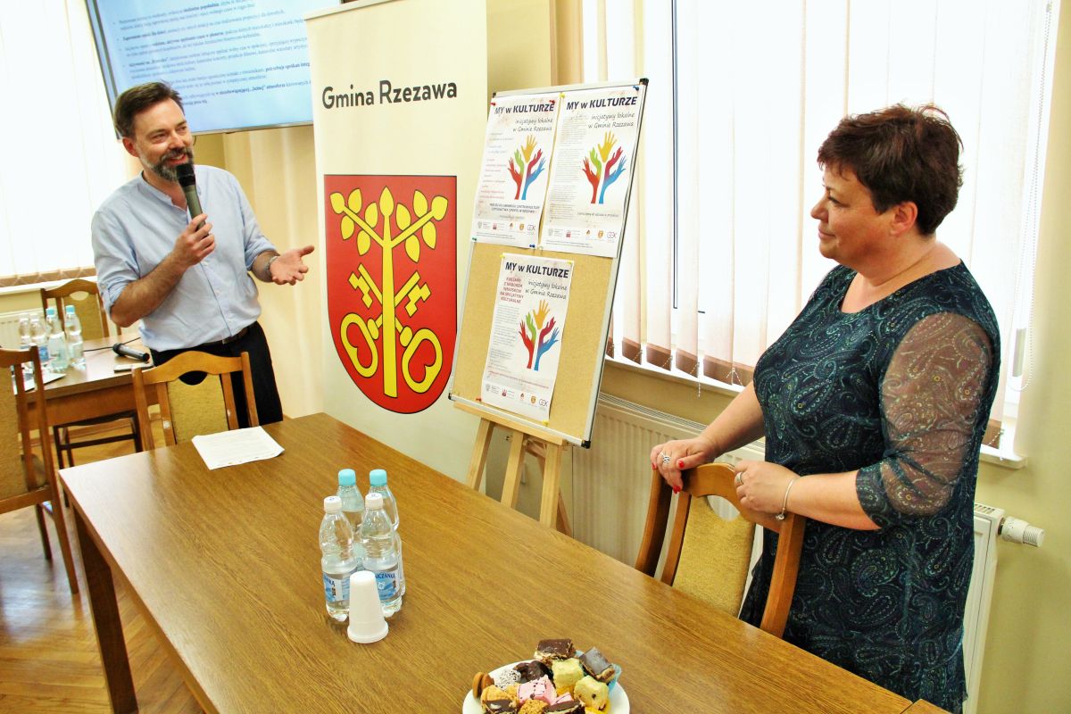 Podczas spotkania ogłoszono rozpoczęcie naboru wniosków na konkurs na inicjatywy kulturalne i przedstawiono regulamin konkursu oraz formularz zgłoszenia licznie przybyłym gościom, radnym, sołtysom, dyrektorom szkół, lokalnym liderom, młodzieży i pracownikom Centrum Kultury w Rzezawie.