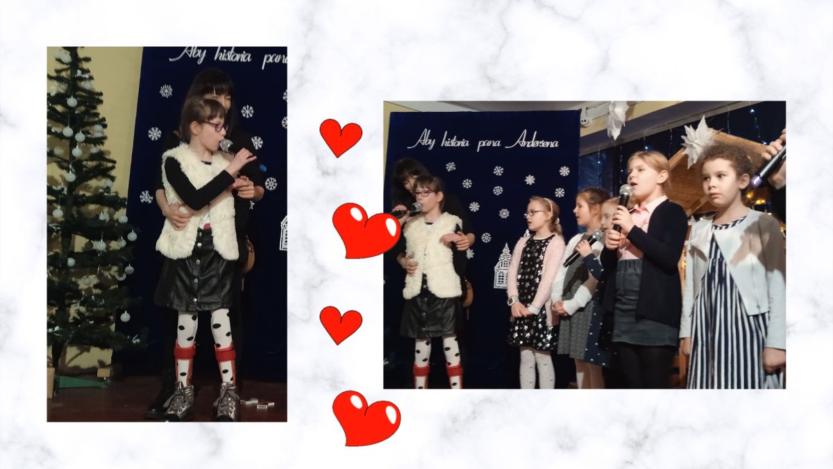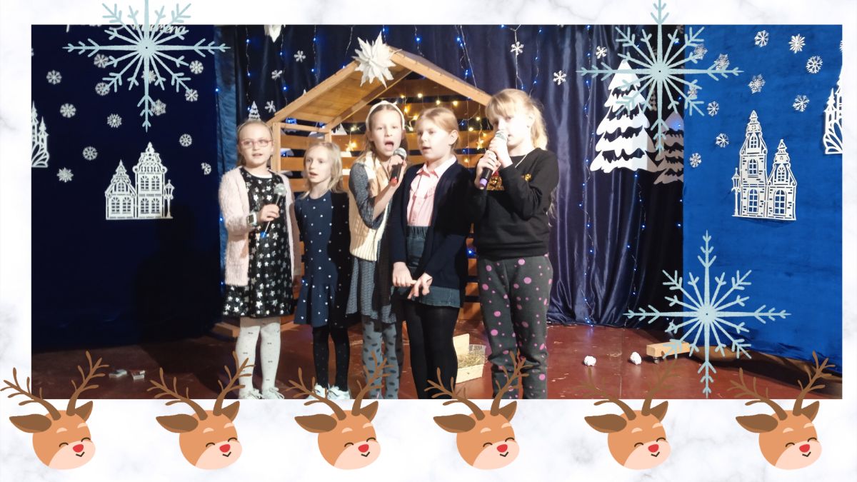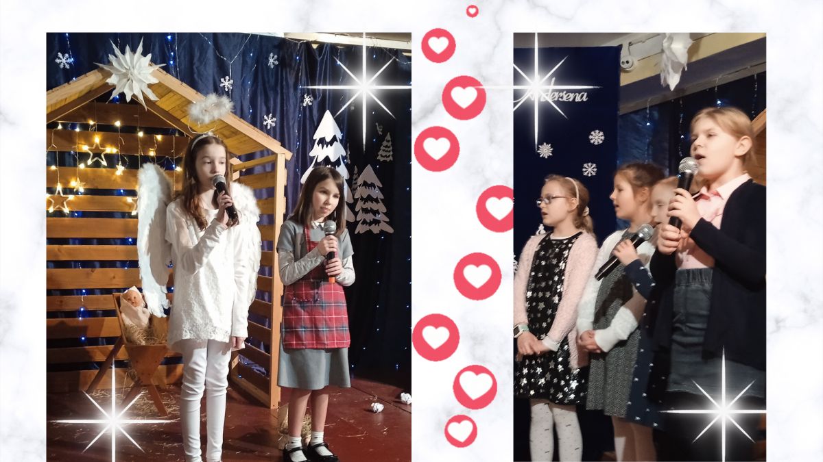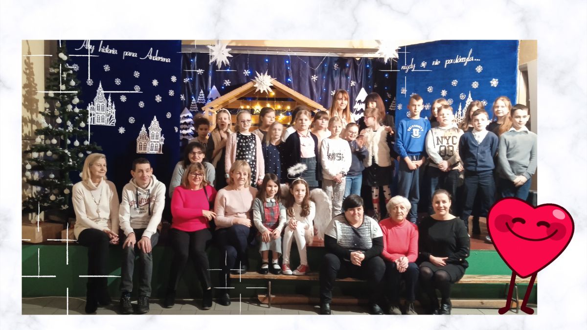 Spotkanie rozpoczęło się powitaniem zgromadzonych gości przez Dyrektor Szkoły panią Barbarę Korol-Adamczyk. Następnie na scenie zaprezentowali się uczniowie klasy IV b wspierani przez uczniów klasy VIII, którzy przygotowali spektakl profilaktyczny „Dziewczynka z zapałkami – całkiem nowa historia” w oparciu o autorski scenariusz napisany przez nauczyciela języka polskiego p. Edytę Lesiewicz. Występ uświetnił taniec śnieżynek w wykonaniu uczennic klasy III a pod kierunkiem p. Katarzyny Szczupak oraz kolęda w wykonaniu uczniów klasy II pod kierunkiem p. Agaty Lekkiej.