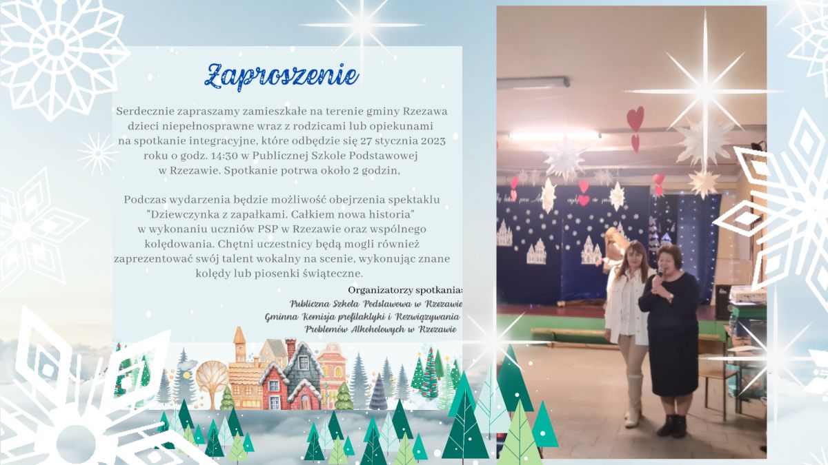 W piątek, 27 stycznia 2023 roku w Publicznej Szkole Podstawowej w Rzezawie odbyło się spotkanie profilaktyczno-integracyjne zorganizowane przez Szkolny Klub Wolontariusza oraz Gminną Komisję Profilaktyki i Rozwiązywania Problemów Alkoholowych. W spotkaniu udział wzięli wolontariusze i uczniowie działający w Szkolnym Kole Caritas oraz dzieci i młodzież z niepełnosprawnościami zamieszkała na terenie naszej gminy.