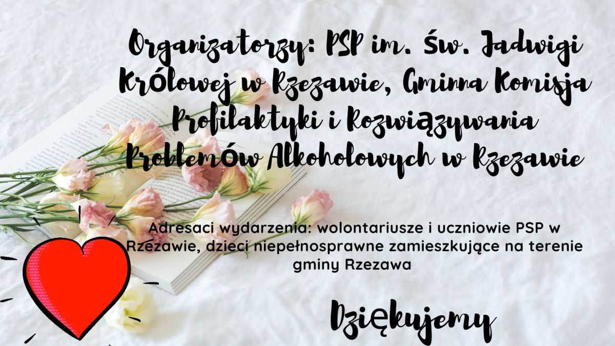 Spotkanie zostało zorganizowane dzięki wsparciu finansowemu Gminnej Komisji Profilaktyki i Rozwiązywania Problemów Alkoholowych oraz zaangażowaniu uczniów działających w Szkolnym Klubie Wolontariusza.