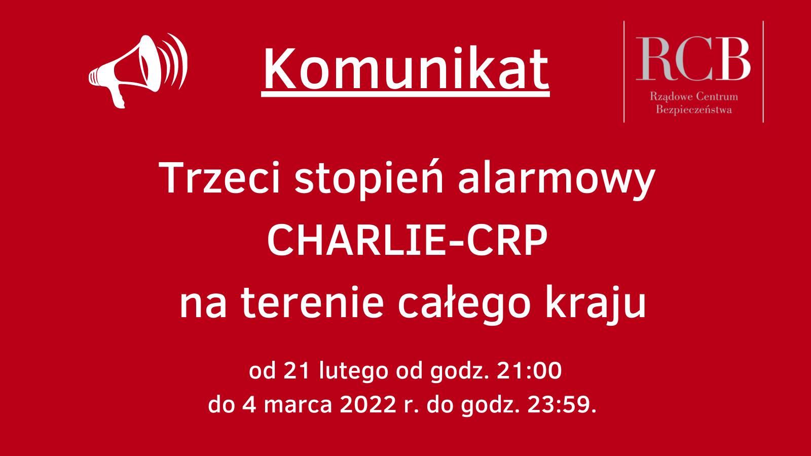 Stopień alarmowy CRP (CHARLIE–CRP) na terytorium całego kraju!