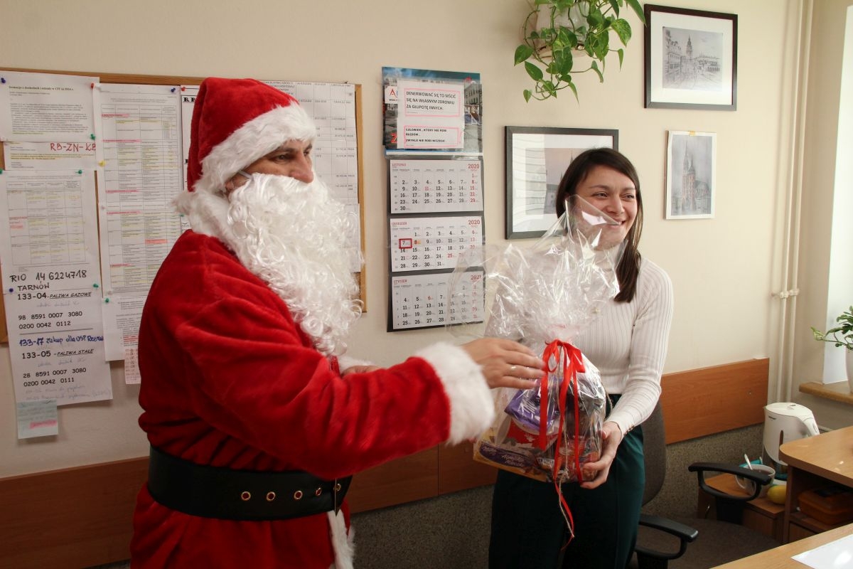 Pracowników rzezawskiego urzędu odwiedził dzisiaj (7 grudnia) Święty Mikołaj i wręczył im słodkie upominki. Nie została przez niego ominięta żadna osoba, dlatego śmiało można uznać, że wszyscy pracownicy dobrze wywiązywali się ze swoich obowiązków.