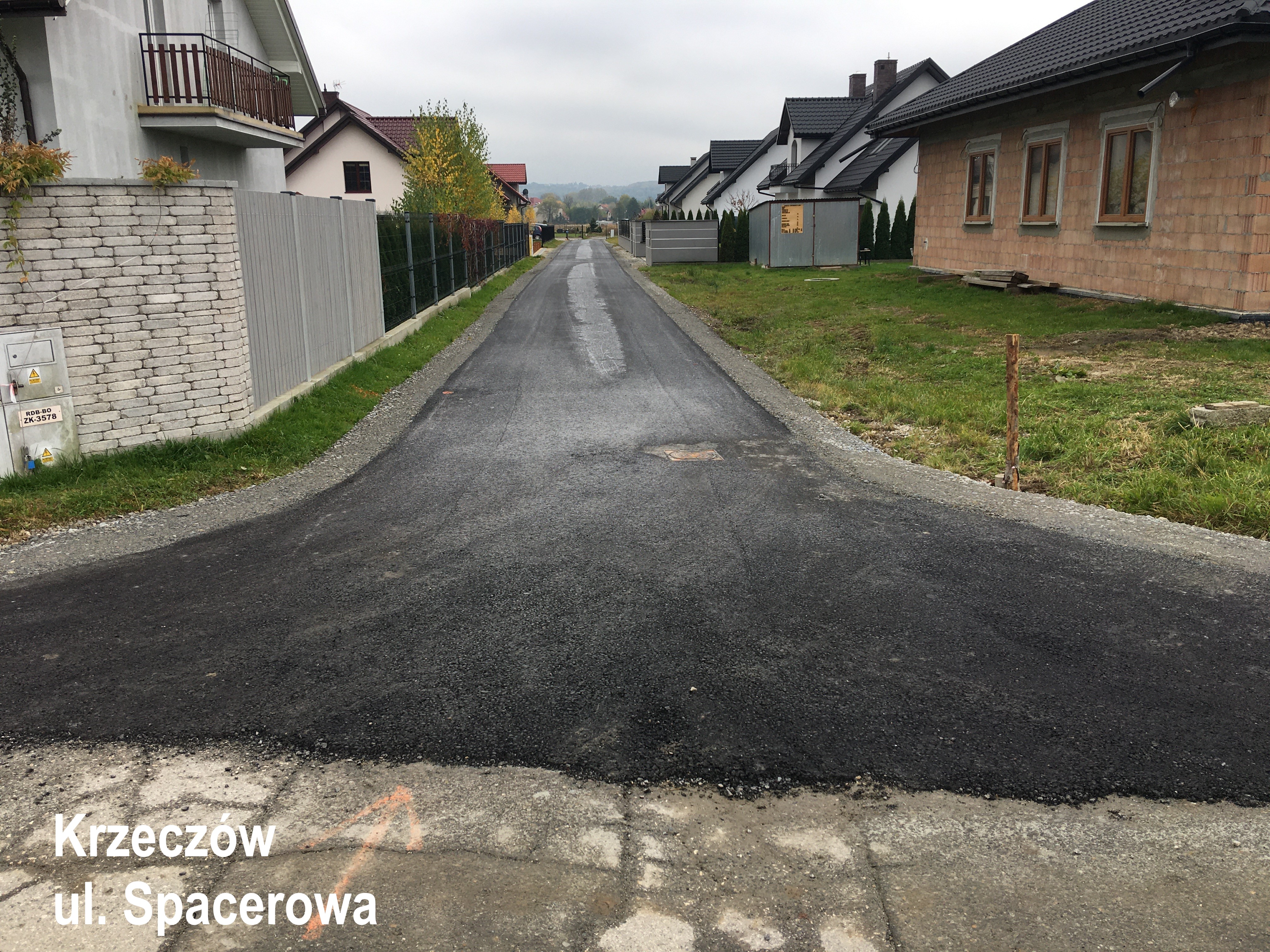 - ulica Spacerowa w Krzeczowie (działki 845/9 i 845/11) o długości 115 m, wartość inwestycji : 30.981,24 zł ;