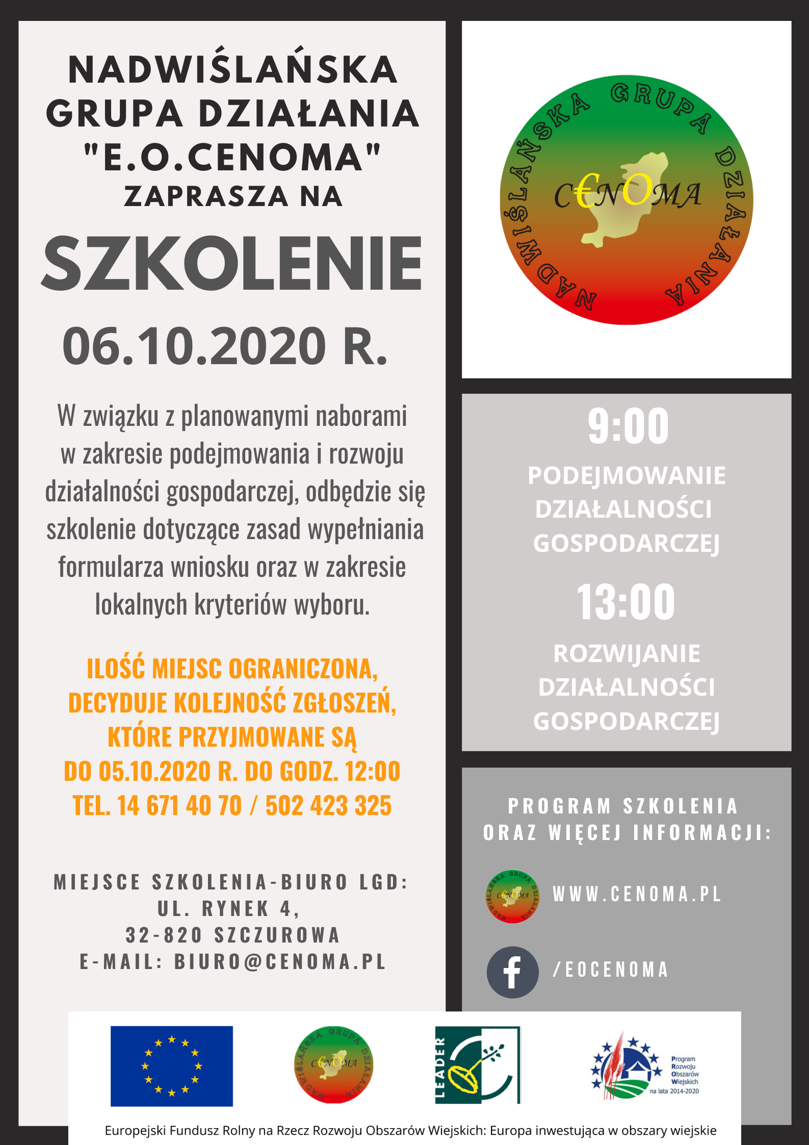 Nadwiślańska Grupa Działania „E.O.CENOMA” serdecznie zaprasza na szkolenia w zakresie podejmowani i rozwijania działalności gospodarczej.