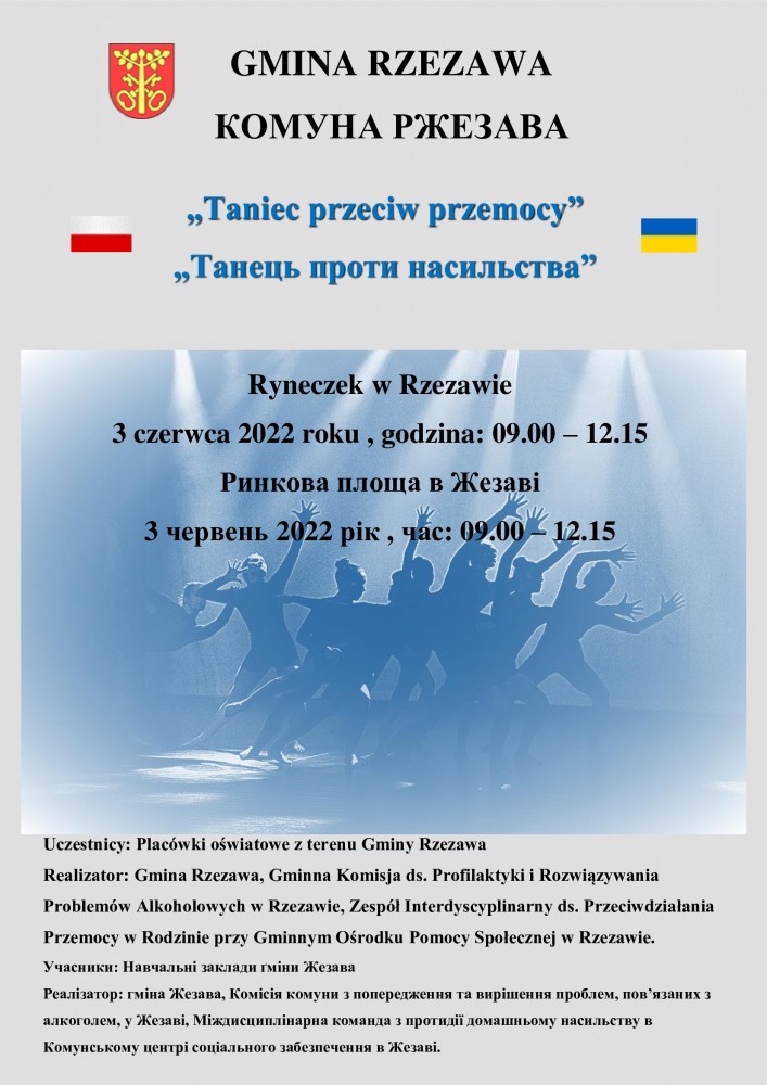 3 czerwca o godz. 9:00 na Ryneczku w Rzezawie odbędzie się projekt socjalny pod hasłem „Taniec przeciw przemocy”. Szczegóły na plakacie.