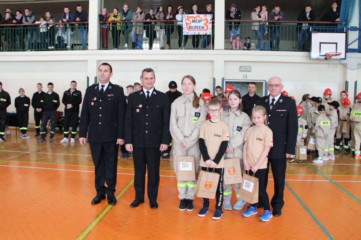 Podobnie było wśród chłopców. Na pierwszym miejscu była MDP OSP Borek, a na drugim MDP OSP Jodłówka. Trzecie miejsce zajęła natomiast MDP OSP Rzezawa. Miejsce czwarte przypadło MDP OSP Łazy.