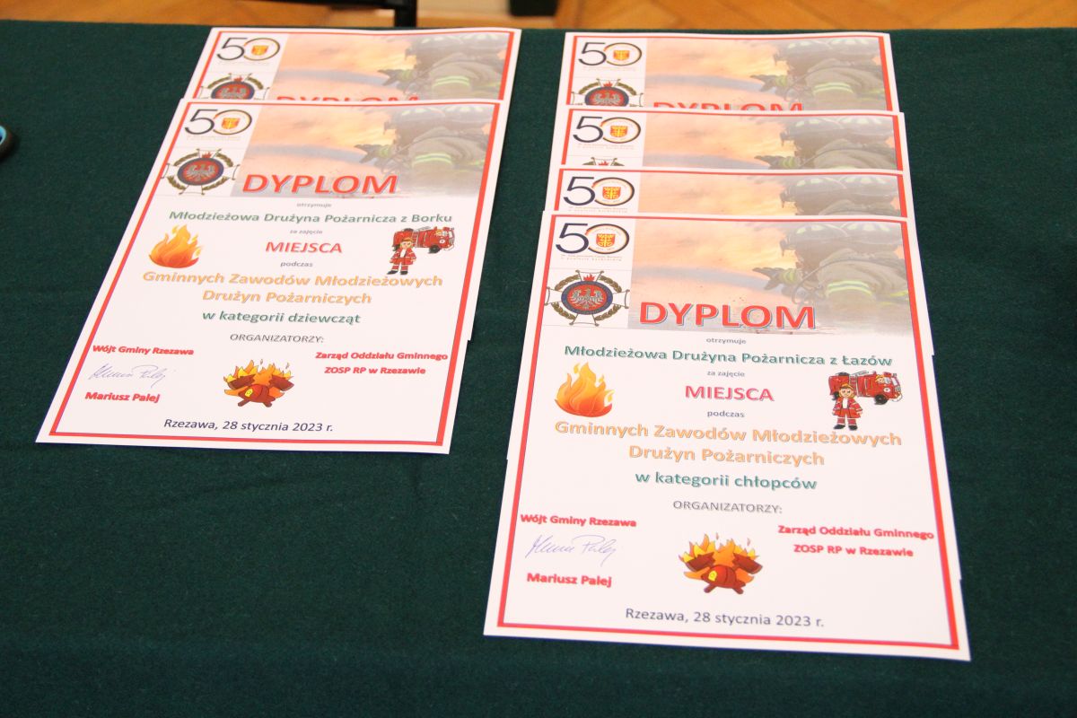 Najlepsze zespoły biorące udział w turnieju otrzymały pamiątkowe puchary. Do wszystkich drużyn trafiły także okolicznościowe dyplomy. Młodzi strażacy otrzymali ponadto drobne upominki.