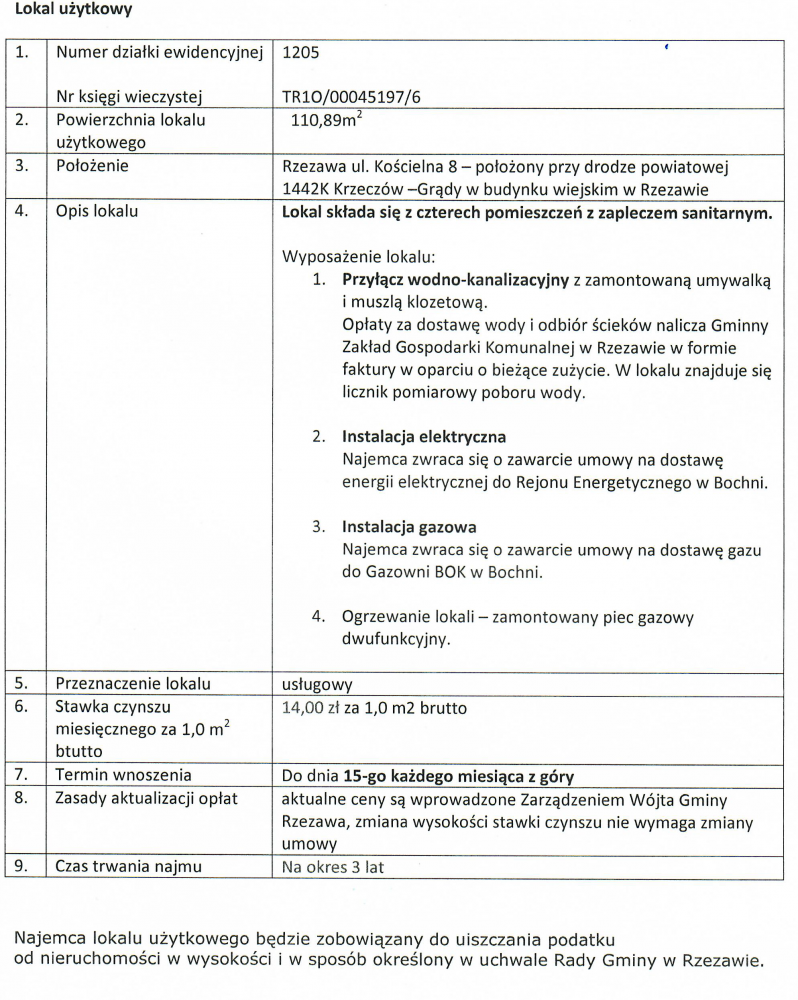 Urząd Gminy ogłasza do wynajęcia lokal użytkowy w Rzezawie