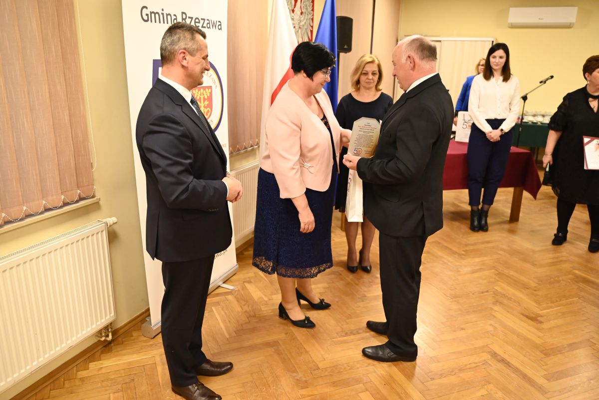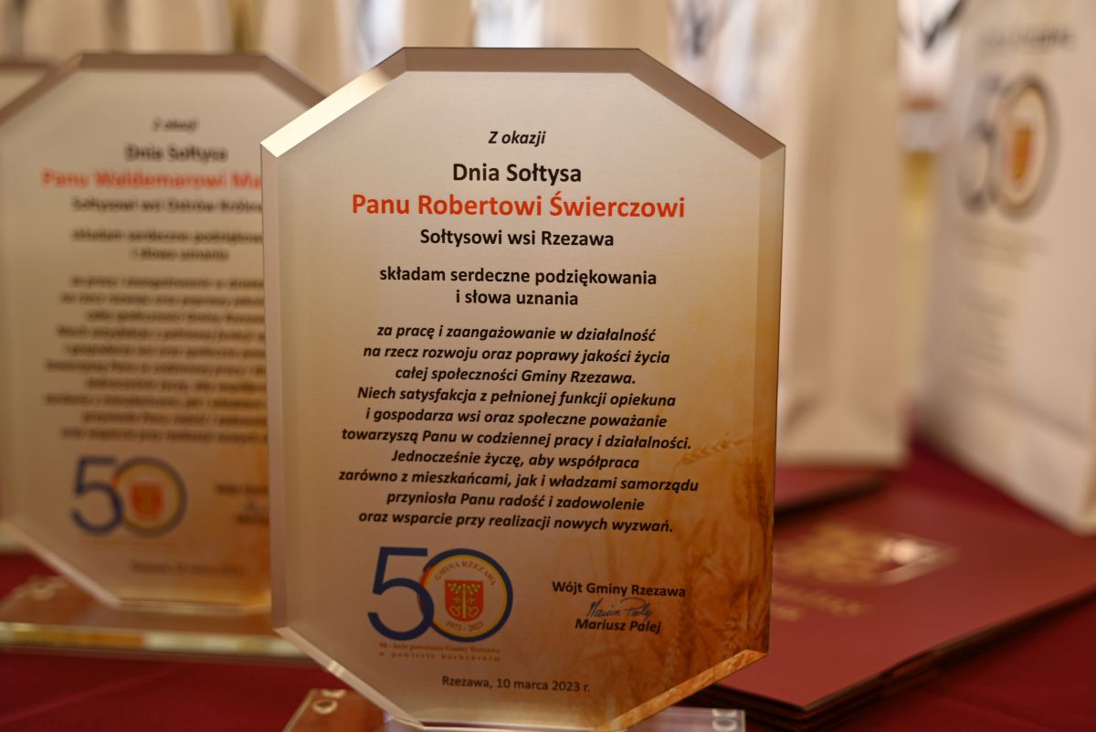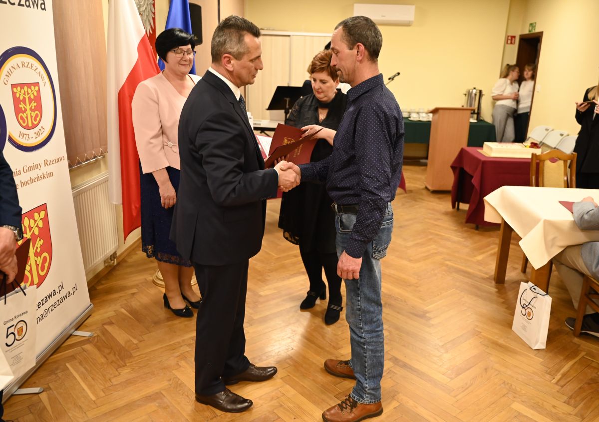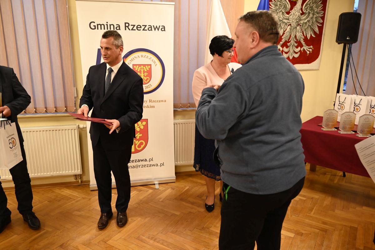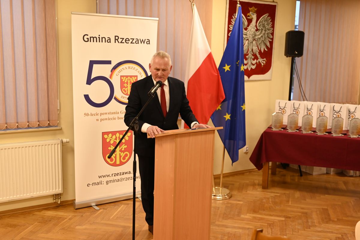 Podczas uroczystości Wójt Gminy Rzezawa podkreślał, że Sołtysi to współcześni liderzy polskiej wsi. - Godnie reprezentujecie mieszkańców, dbacie o ich interesy, wsłuchujecie się w ich problemy oraz dążycie do rozwoju lokalnych społeczności. Należycie do społeczników, którym ogromną radość i satysfakcję daje praca z ludźmi, którzy ochoczo angażują się w życie swoich małych społeczności. Tak, aby każdemu żyło się lepiej. Każda i każdy z Was jest trochę takim człowiekiem - orkiestrą, bo w swojej działalności dotykacie wszystkich obszarów życia - od spraw społecznych i zdrowia, przez infrastrukturę, aż po wydarzenia kulturalne i sportowe. Nie wyobrażam sobie żadnej wsi bez sołtysa. Jest on dla lokalnej społeczności takim „swoim człowiekiem”. Żyje i wywodzi się spośród mieszkańców danej wsi, w sposób naturalny jest najbliżej potrzeb i problemów swoich sąsiadów. Doskonale zna lokalne sprawy, zna też osobiście mieszkańców i wie, jak z nimi rozmawiać. Dlatego na sołtysów wybiera się ludzi cieszących się autorytetem, często inicjatorów akcji społecznych, takich, którzy czują się związani ze swoimi miejscowościami i będą bronić ich lokalnego interesu. Mam ogromny szacunek do pracy sołtysów, do pracy Was wszystkich. Niejednokrotnie udowodnialiście, że los Waszych małych ojczyzn oraz ich mieszkańców nie jest Wam obojętny – podkreślał w swoim przemówieniu Wójt Mariusz Palej.