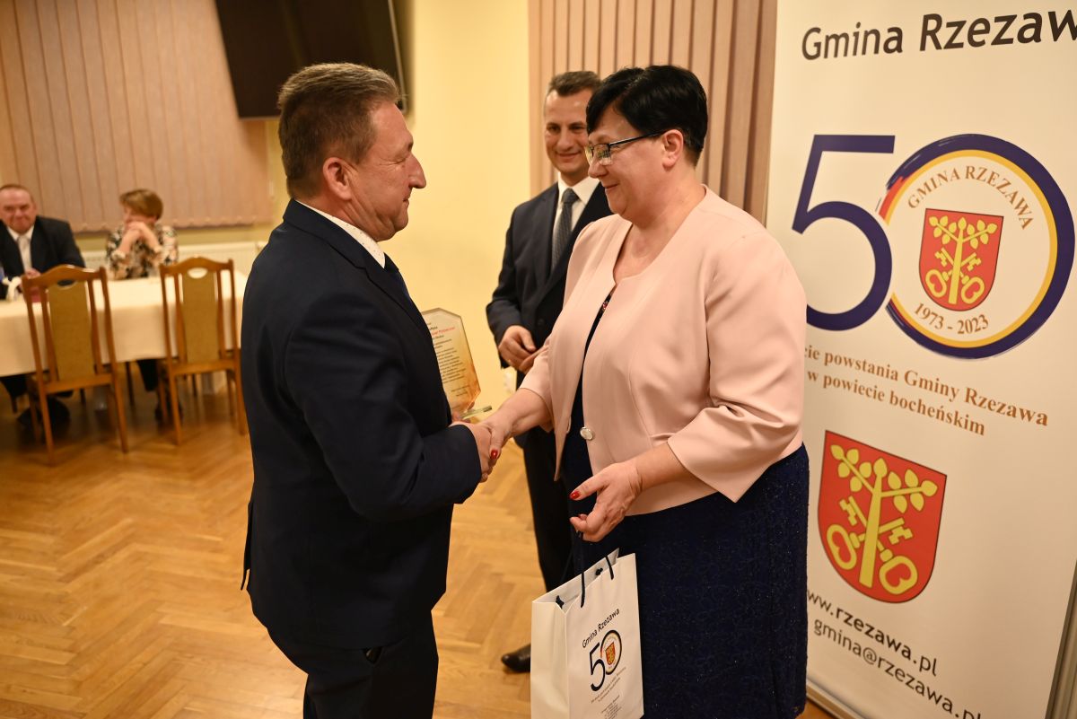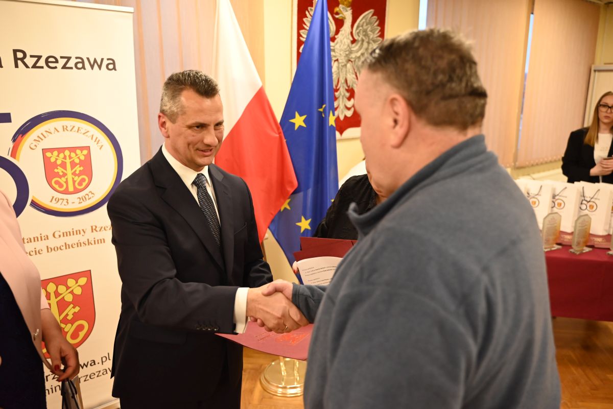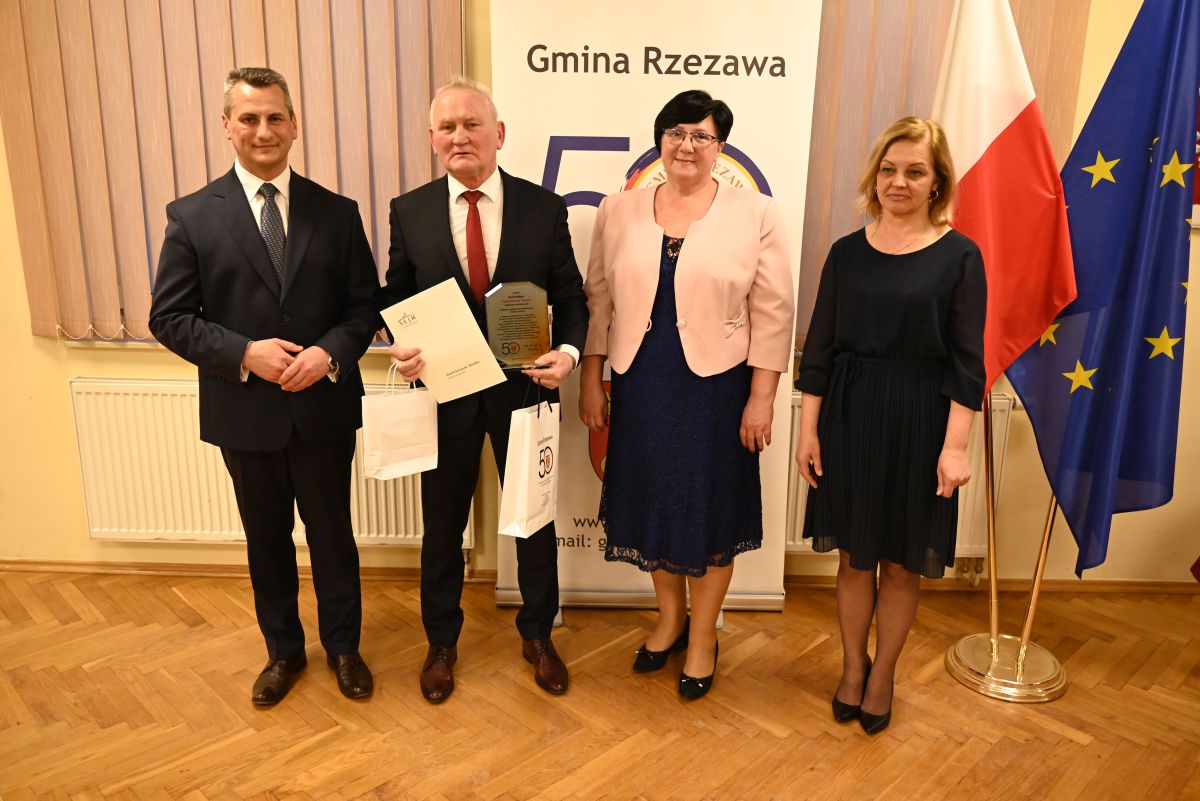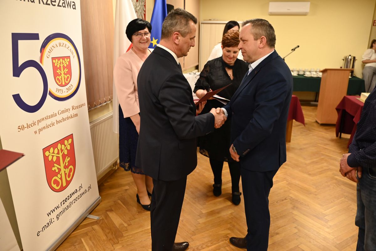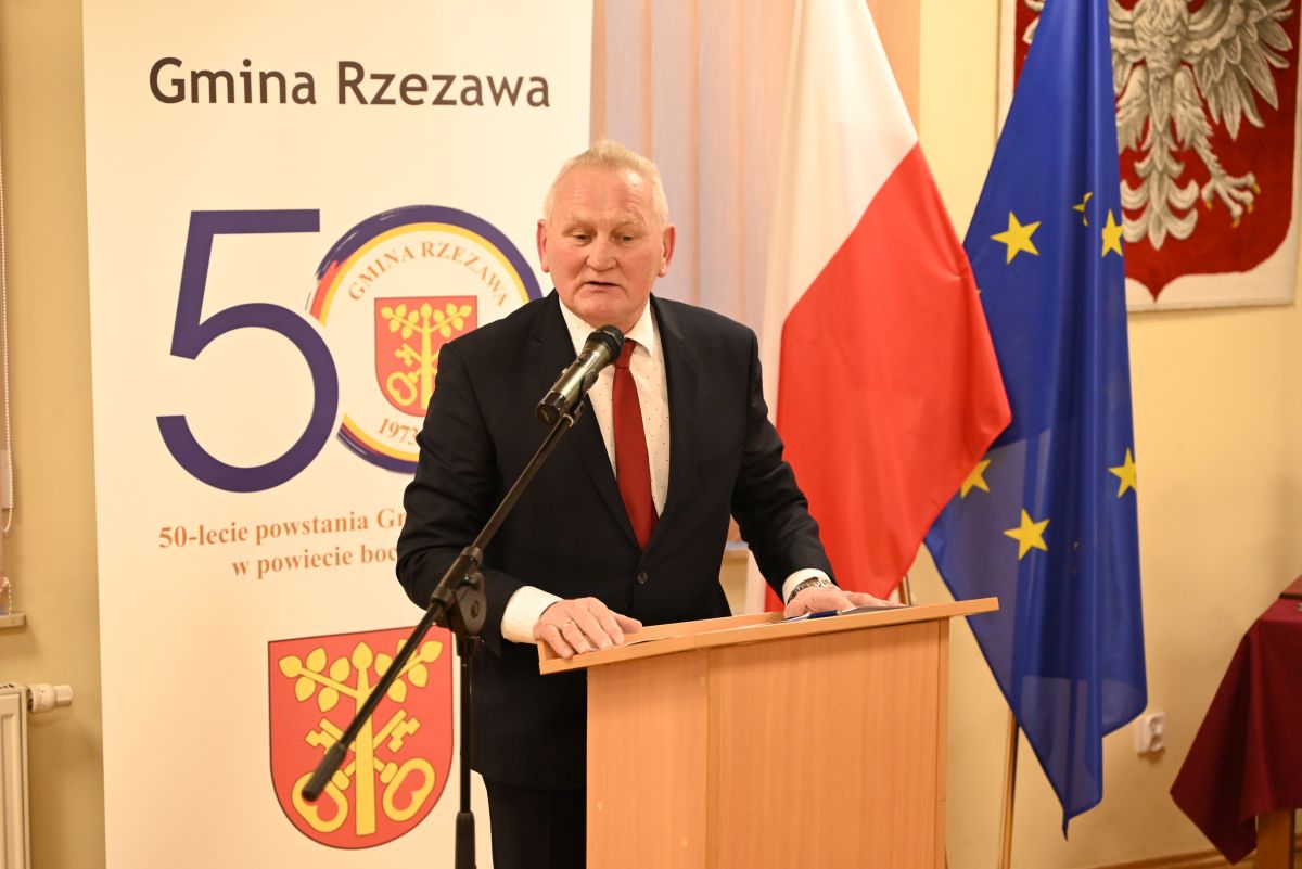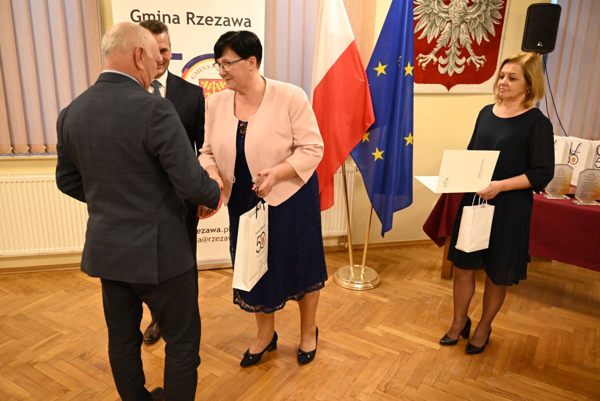 Podczas uroczystości Wójt Gminy Rzezawa podkreślał, że Sołtysi to współcześni liderzy polskiej wsi. - Godnie reprezentujecie mieszkańców, dbacie o ich interesy, wsłuchujecie się w ich problemy oraz dążycie do rozwoju lokalnych społeczności. Należycie do społeczników, którym ogromną radość i satysfakcję daje praca z ludźmi, którzy ochoczo angażują się w życie swoich małych społeczności. Tak, aby każdemu żyło się lepiej. Każda i każdy z Was jest trochę takim człowiekiem - orkiestrą, bo w swojej działalności dotykacie wszystkich obszarów życia - od spraw społecznych i zdrowia, przez infrastrukturę, aż po wydarzenia kulturalne i sportowe. Nie wyobrażam sobie żadnej wsi bez sołtysa. Jest on dla lokalnej społeczności takim „swoim człowiekiem”. Żyje i wywodzi się spośród mieszkańców danej wsi, w sposób naturalny jest najbliżej potrzeb i problemów swoich sąsiadów. Doskonale zna lokalne sprawy, zna też osobiście mieszkańców i wie, jak z nimi rozmawiać. Dlatego na sołtysów wybiera się ludzi cieszących się autorytetem, często inicjatorów akcji społecznych, takich, którzy czują się związani ze swoimi miejscowościami i będą bronić ich lokalnego interesu. Mam ogromny szacunek do pracy sołtysów, do pracy Was wszystkich. Niejednokrotnie udowodnialiście, że los Waszych małych ojczyzn oraz ich mieszkańców nie jest Wam obojętny – podkreślał w swoim przemówieniu Wójt Mariusz Palej.