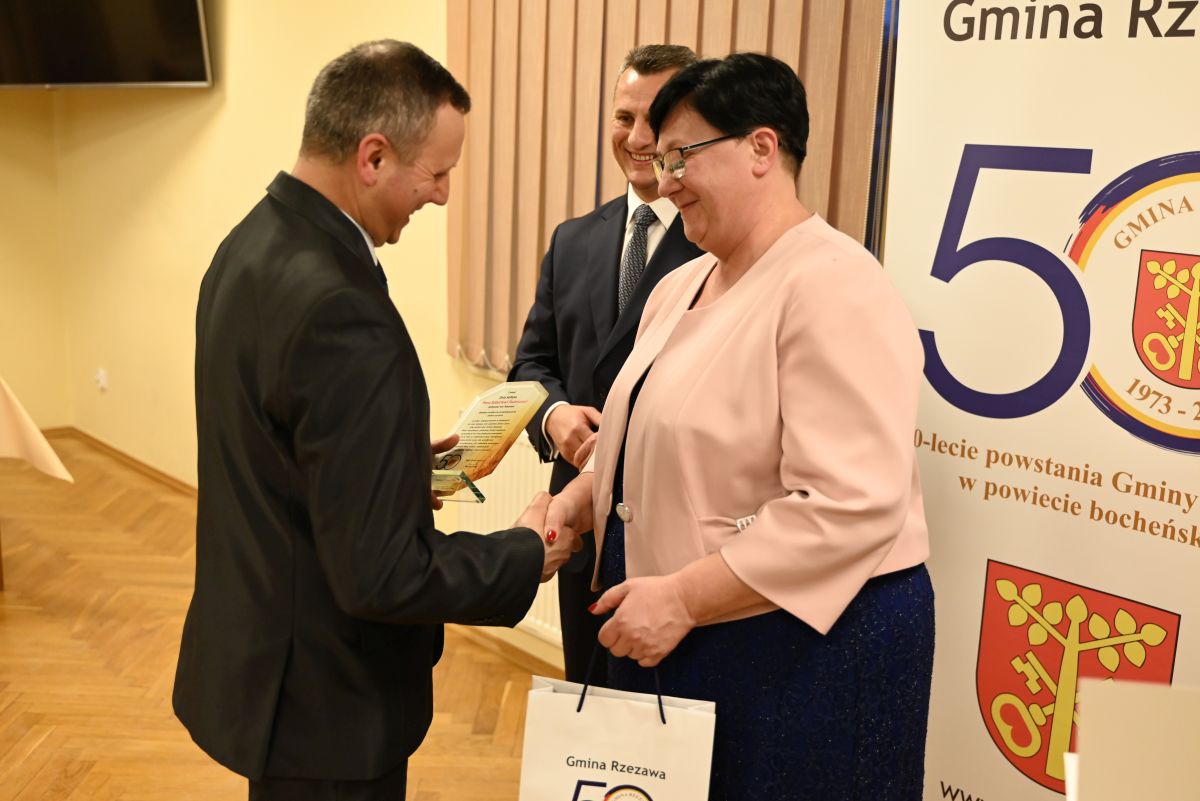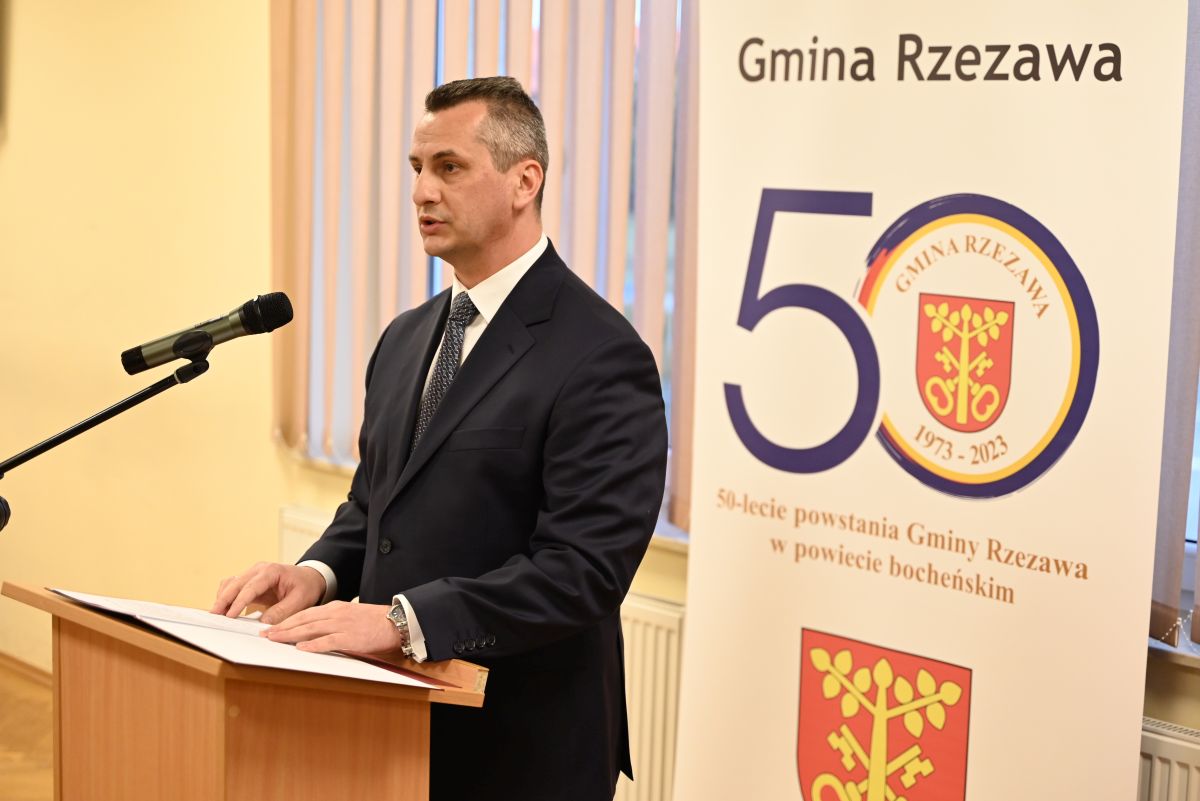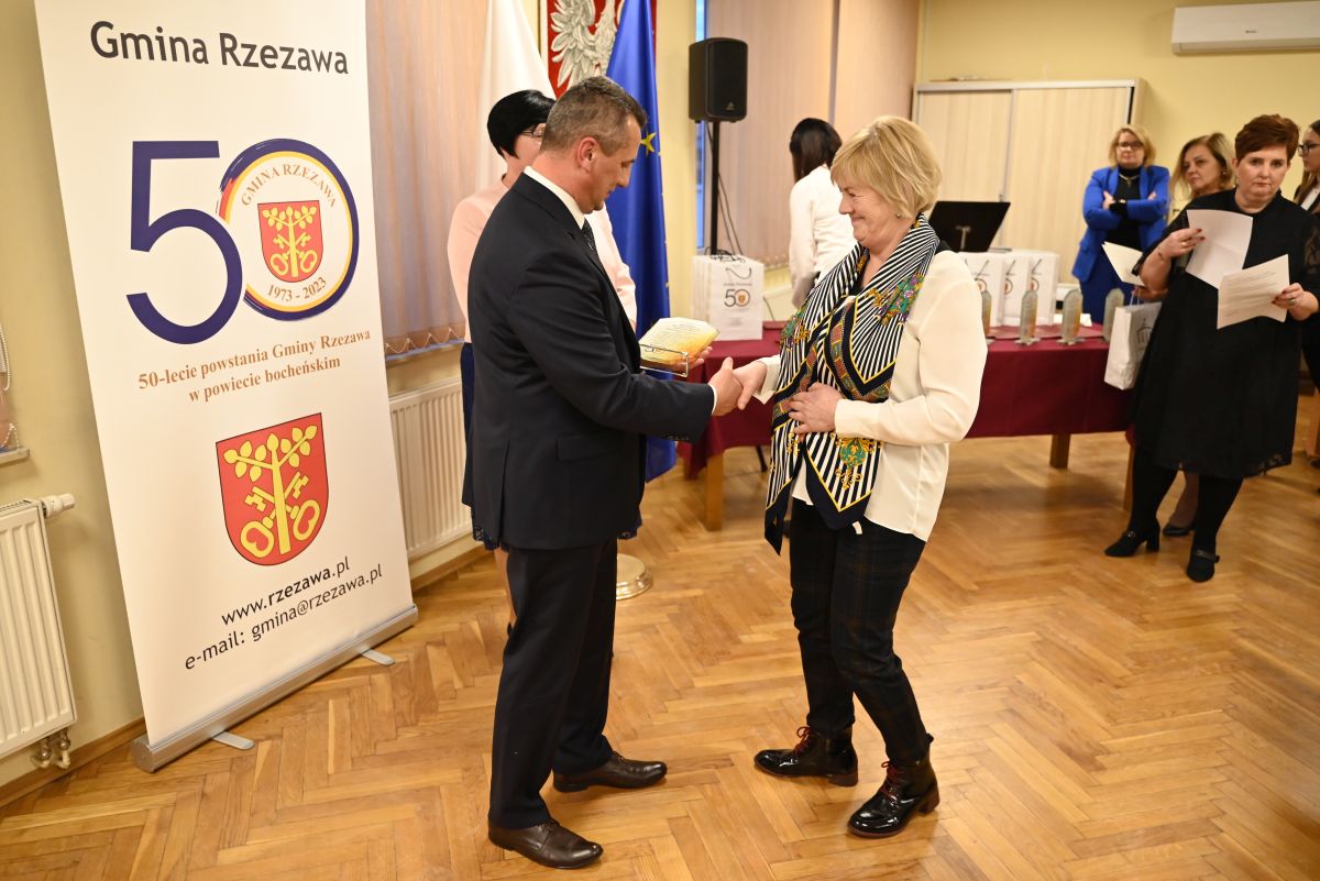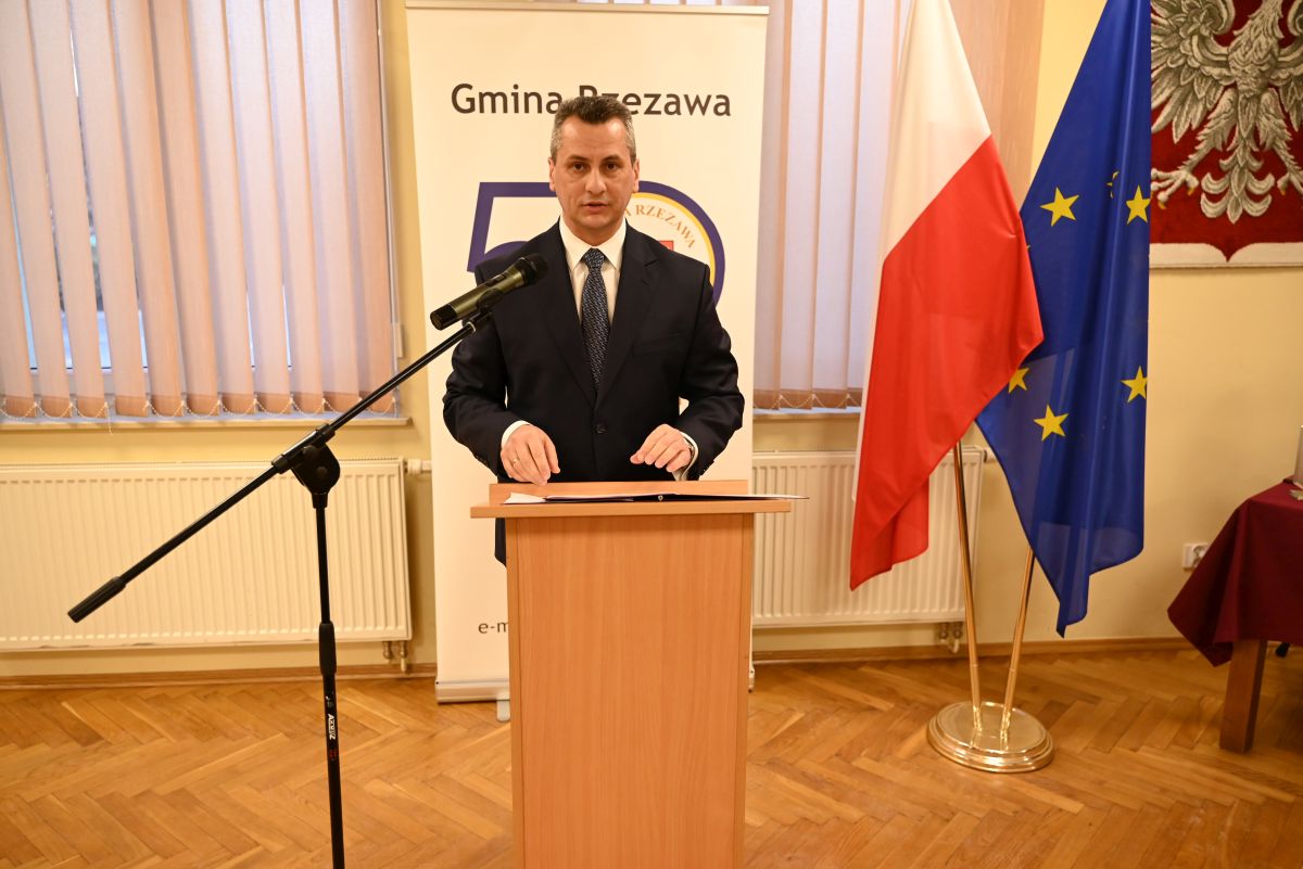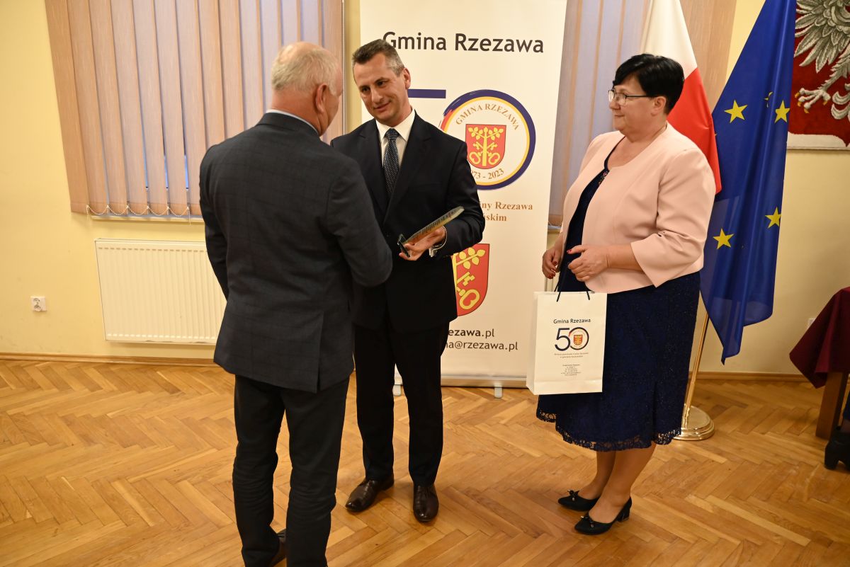 Podczas uroczystości Wójt Gminy Rzezawa podkreślał, że Sołtysi to współcześni liderzy polskiej wsi. - Godnie reprezentujecie mieszkańców, dbacie o ich interesy, wsłuchujecie się w ich problemy oraz dążycie do rozwoju lokalnych społeczności. Należycie do społeczników, którym ogromną radość i satysfakcję daje praca z ludźmi, którzy ochoczo angażują się w życie swoich małych społeczności. Tak, aby każdemu żyło się lepiej. Każda i każdy z Was jest trochę takim człowiekiem - orkiestrą, bo w swojej działalności dotykacie wszystkich obszarów życia - od spraw społecznych i zdrowia, przez infrastrukturę, aż po wydarzenia kulturalne i sportowe. Nie wyobrażam sobie żadnej wsi bez sołtysa. Jest on dla lokalnej społeczności takim „swoim człowiekiem”. Żyje i wywodzi się spośród mieszkańców danej wsi, w sposób naturalny jest najbliżej potrzeb i problemów swoich sąsiadów. Doskonale zna lokalne sprawy, zna też osobiście mieszkańców i wie, jak z nimi rozmawiać. Dlatego na sołtysów wybiera się ludzi cieszących się autorytetem, często inicjatorów akcji społecznych, takich, którzy czują się związani ze swoimi miejscowościami i będą bronić ich lokalnego interesu. Mam ogromny szacunek do pracy sołtysów, do pracy Was wszystkich. Niejednokrotnie udowodnialiście, że los Waszych małych ojczyzn oraz ich mieszkańców nie jest Wam obojętny – podkreślał w swoim przemówieniu Wójt Mariusz Palej.