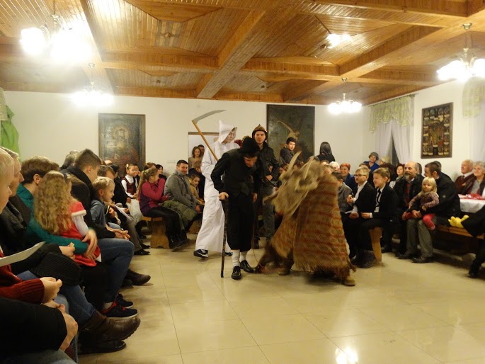 Aby spotkanie nie było bardzo poważne, na sali pojawiła się Grupa Kolędnicza z Turoniem, w którą wcieliła się młodzież. Ten humorystyczny pokaz doprowadził wiele osób do łez i z pewnością na długo zapadł w pamięci zgromadzonych.
