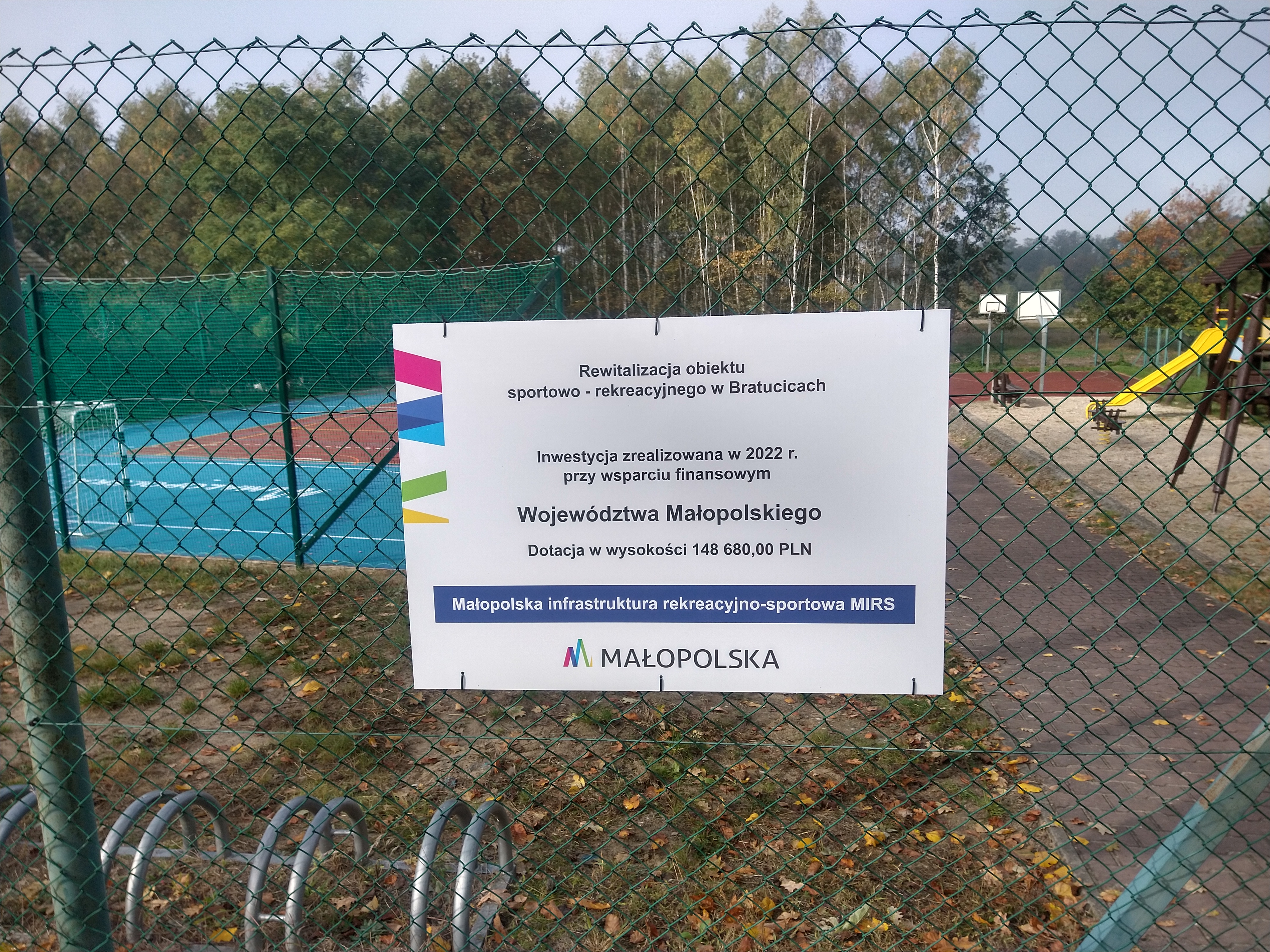 Na terenie gminy Rzezawa powstał kolejny piękny obiekt sportowy. W Bratucicach zakończono kompleksową modernizację boiska wielofunkcyjnego. Na realizację tej inwestycji przeznaczono łącznie ponad 390 tys. zł. Zadanie zostało wsparte dotacją z Województwa Małopolskiego w wysokości blisko 150 tys. zł - w ramach projektu „Małopolska infrastruktura rekreacyjno-sportowa – MIRS”.