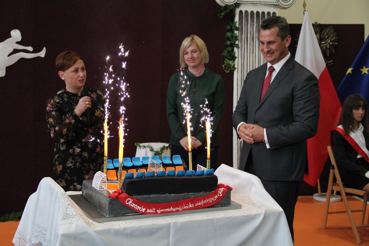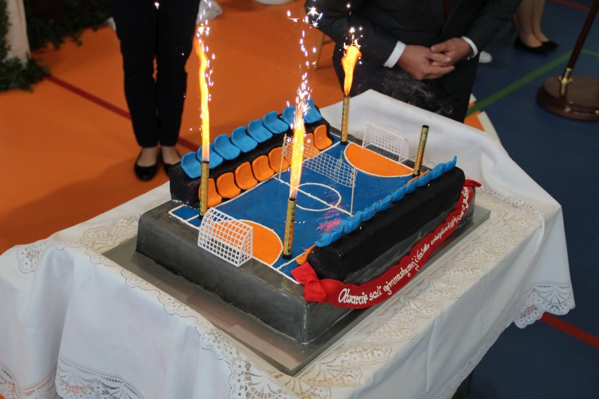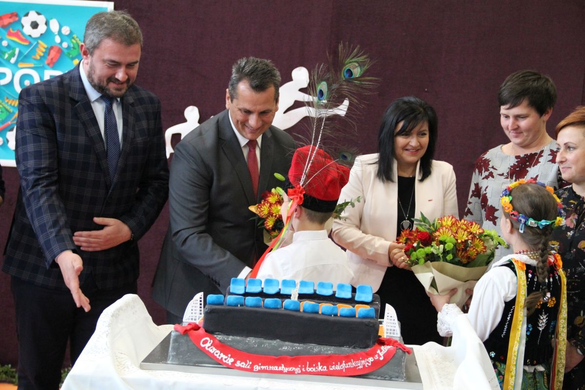 Oficjalnego otwarcia kompleksu sportowego w Jodłówce dokonano poprzez symboliczne przecięcie wstęgi oraz jego poświęcenie. Nowy obiekt poświęcił Ksiądz Prałat Zbigniew Guzy, Rektor Wydziału Kurii Biskupiej w Tarnowie. Był ponadto m.in. tort w kształcie boiska sportowego. Wójt Mariusz Palej wręczył także Dyrektor Publicznej Szkoły Podstawowej im. Rotmistrza Witolda Pileckiego w Jodłówce symboliczny klucz do nowej hali sportowej oraz wielofunkcyjnego boiska sportowego. Wójt z jej rąk otrzymał natomiast pamiątkową statuetkę w podziękowaniu za zrealizowanie tej niezwykle ważnej inwestycji.