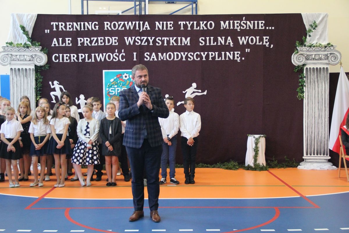 Mariusz Palej podczas swojego przemówienia kilkukrotnie zaznaczał również, że jest ogromnie szczęśliwy z otwarcia nowoczesnej sali gimnastycznej i wielofunkcyjnego boiska sportowej w Jodłówce. - W poprzedniej kampanii wyborczej obiecałem tę inwestycję mieszkańcom. Dzisiaj czuję ogromną dumę, że mogę stanąć przed Państwem i powiedzieć: kolejna sala gimnastyczna, kolejne boisko sportowe właśnie zostaje otwarte. Mam w sobie ogromną wiarę, że spotykając się z tak miłej okazji, jeszcze bardziej docenimy, jak wiele jako zespół możemy zrobić dla tych, którzy są dla nas najważniejsi, czyli dla naszych dzieci – mówił Wójt Gminy Rzezawa. Serdecznie dziękował on także wszystkim, którzy służyli pomocą, dobrą radą, wsparciem finansowym i doradztwem w trakcie realizacji tej niezwykle ważnej dla lokalnej społeczności inwestycji.
