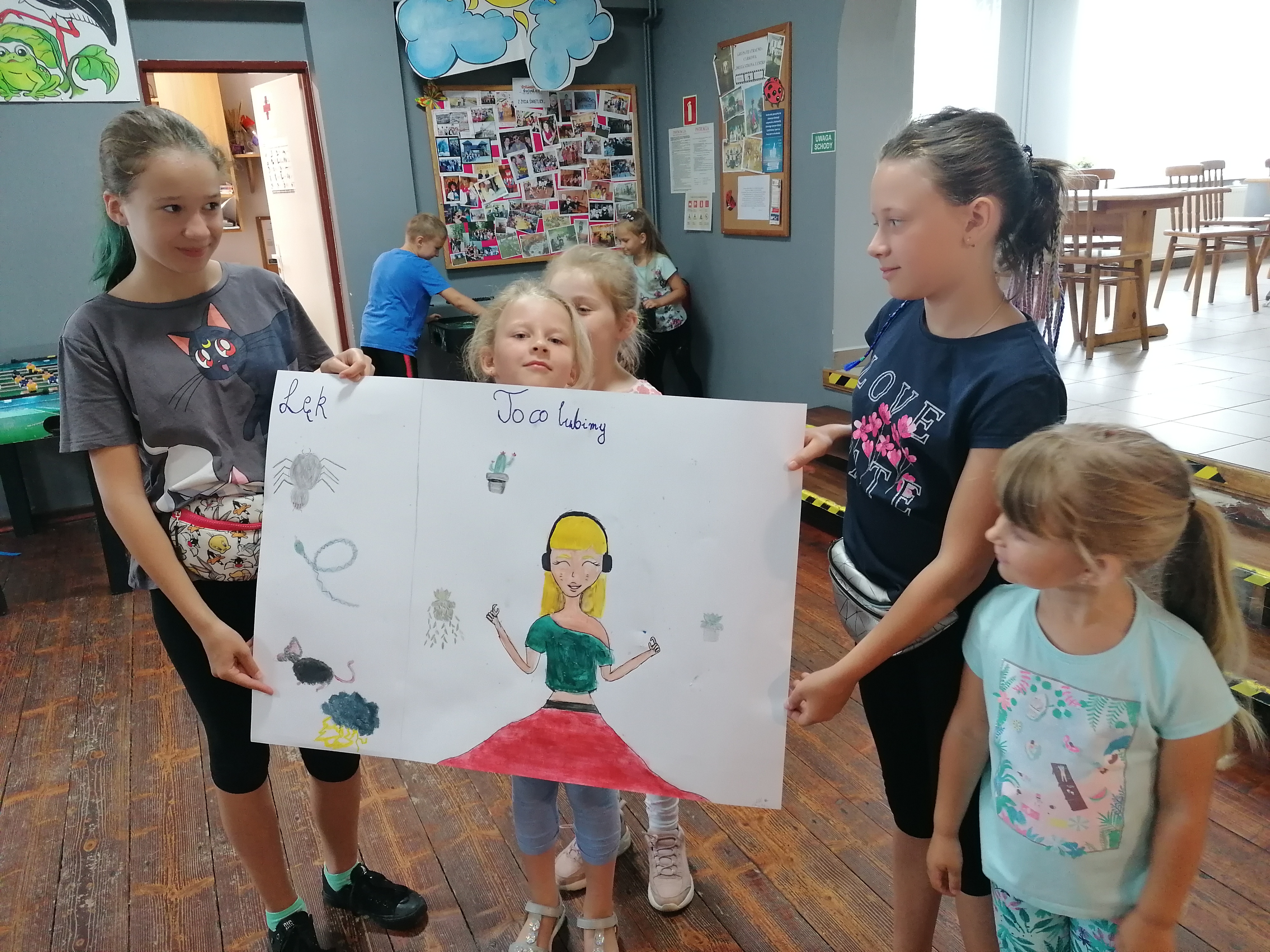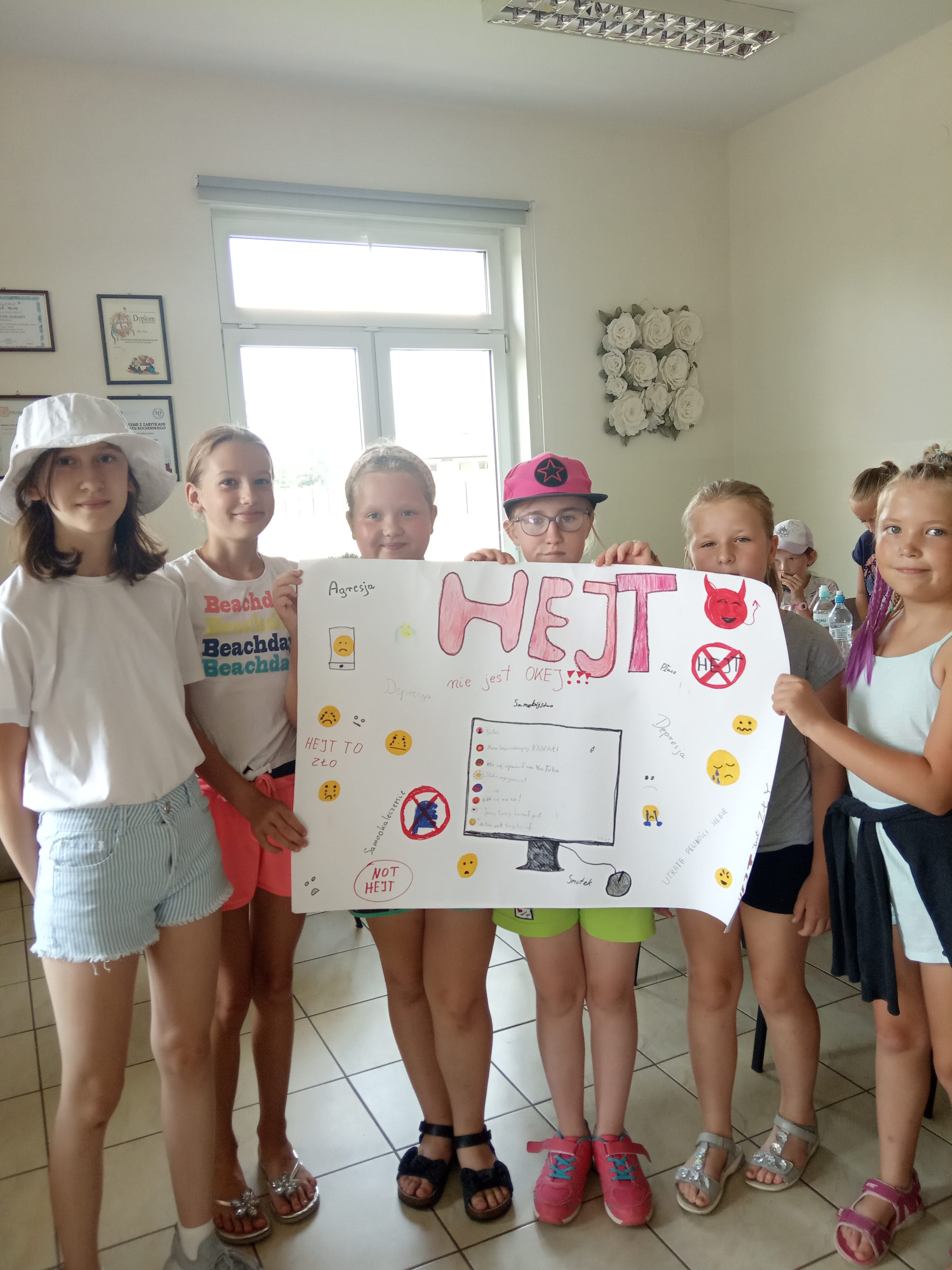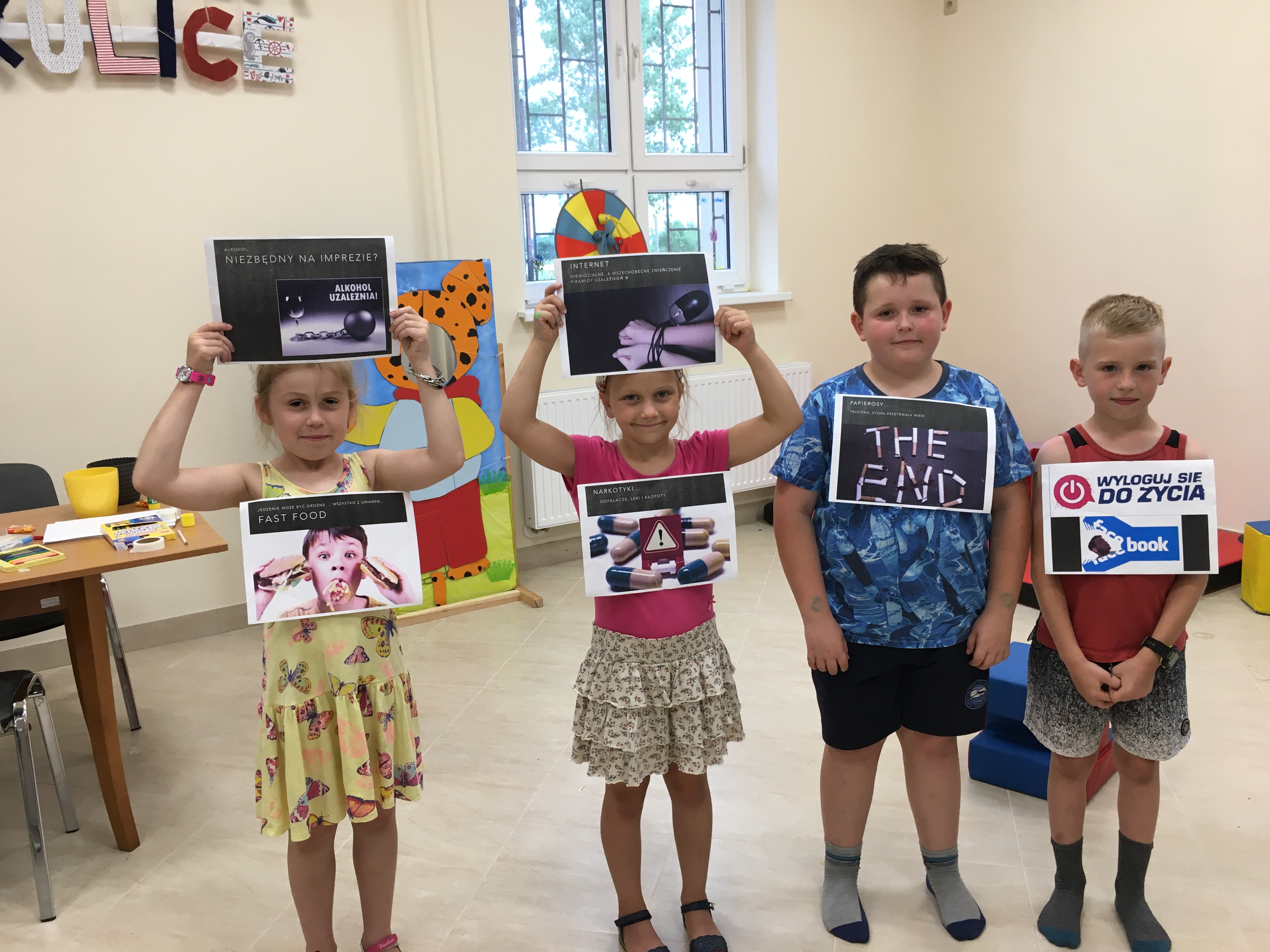 Ważnym punktem wakacji z profilaktyką było spotkanie z psychologiem Anetą Kułak, która przeprowadziła ciekawe zajęcia na temat emocji. Poruszyła też temat samoakceptacji i radzenia sobie z problemami. Ważną częścią spotkania była też rozmowa o dopalaczach i uzależnieniach od internetu.