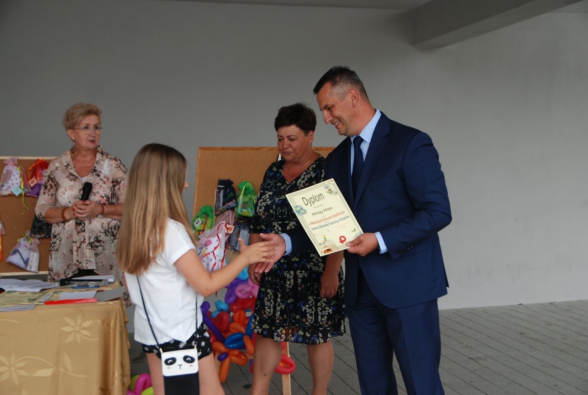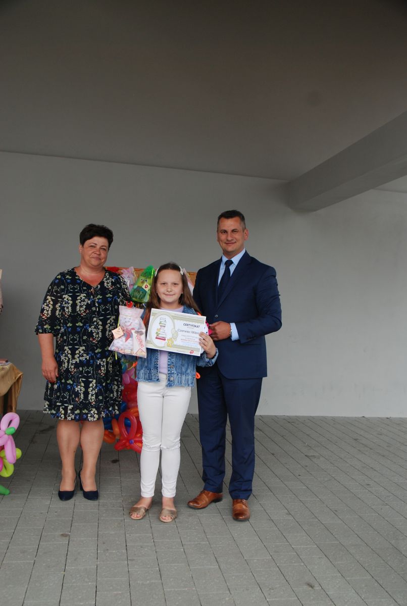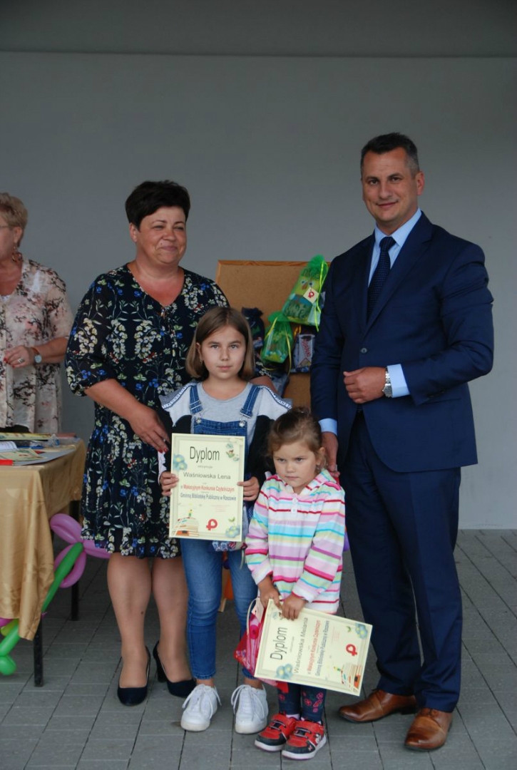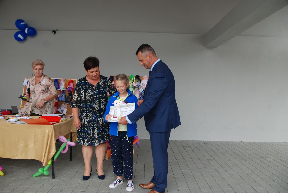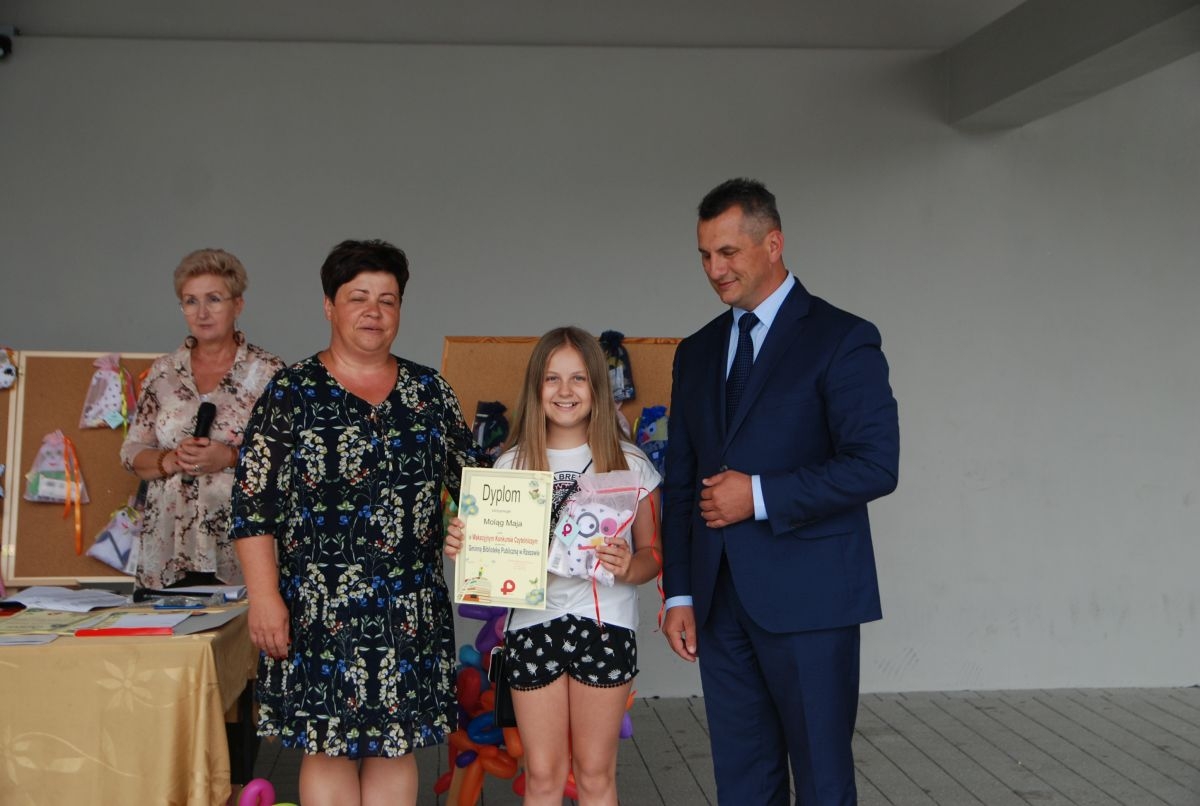 Pożegnanie wakacji a właściwie zakończenie Wakacyjnego projektu, Konkursu Czytelniczego miało miejsce pierwszego września na RYNECZKU w Rzezawie, gdzie odbyło się uroczyste wręczenie listów gratulacyjnych, certyfikatów, i dyplomów. Listy, certyfikaty oraz dyplomy wręczał Pan Mariusz Palej - Wójt Gminy Rzezawa oraz Pani Renata Prokop - Dyrektor Gminnego Centrum Kultury Czytelnictwa i Sportu w Rzezawie.