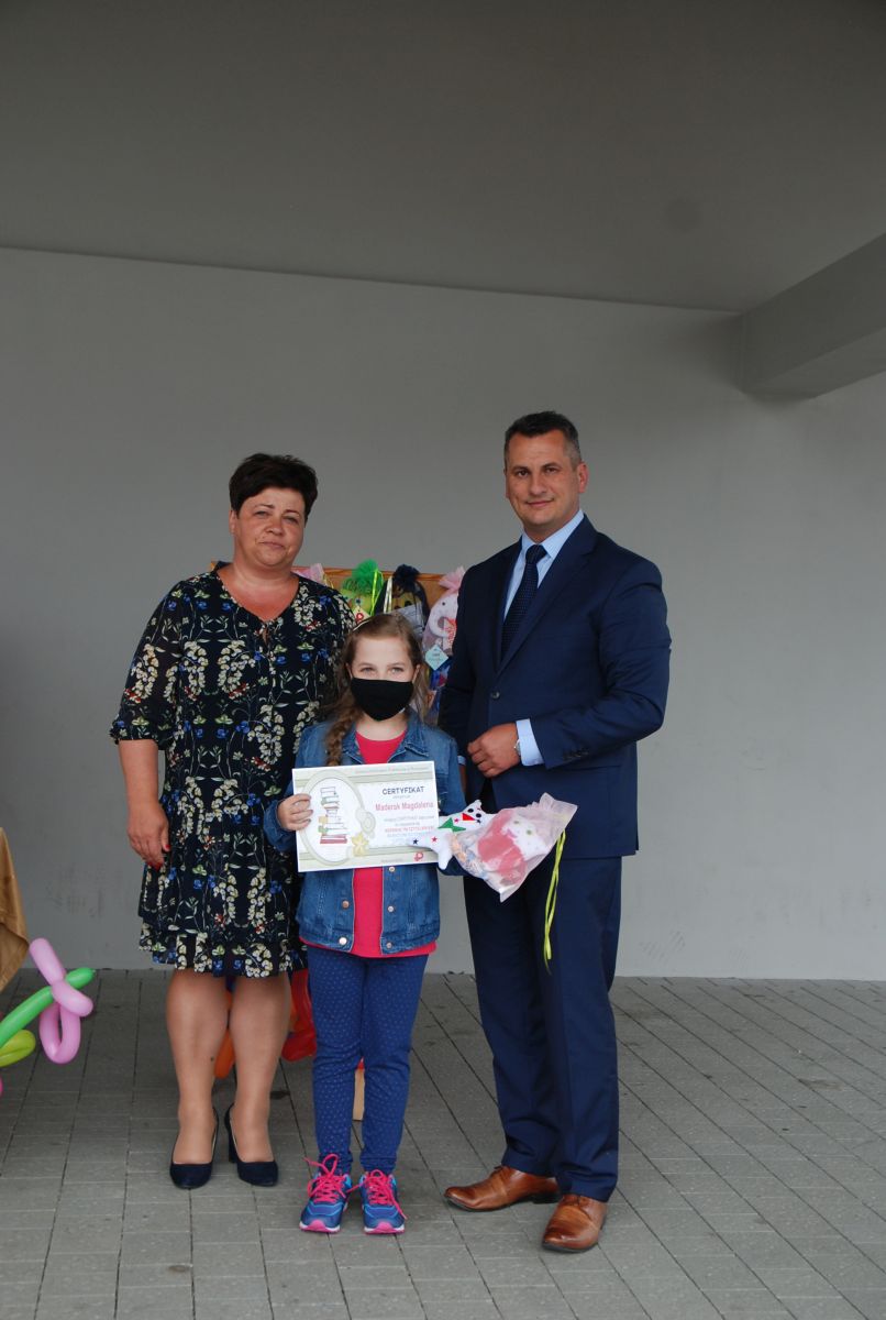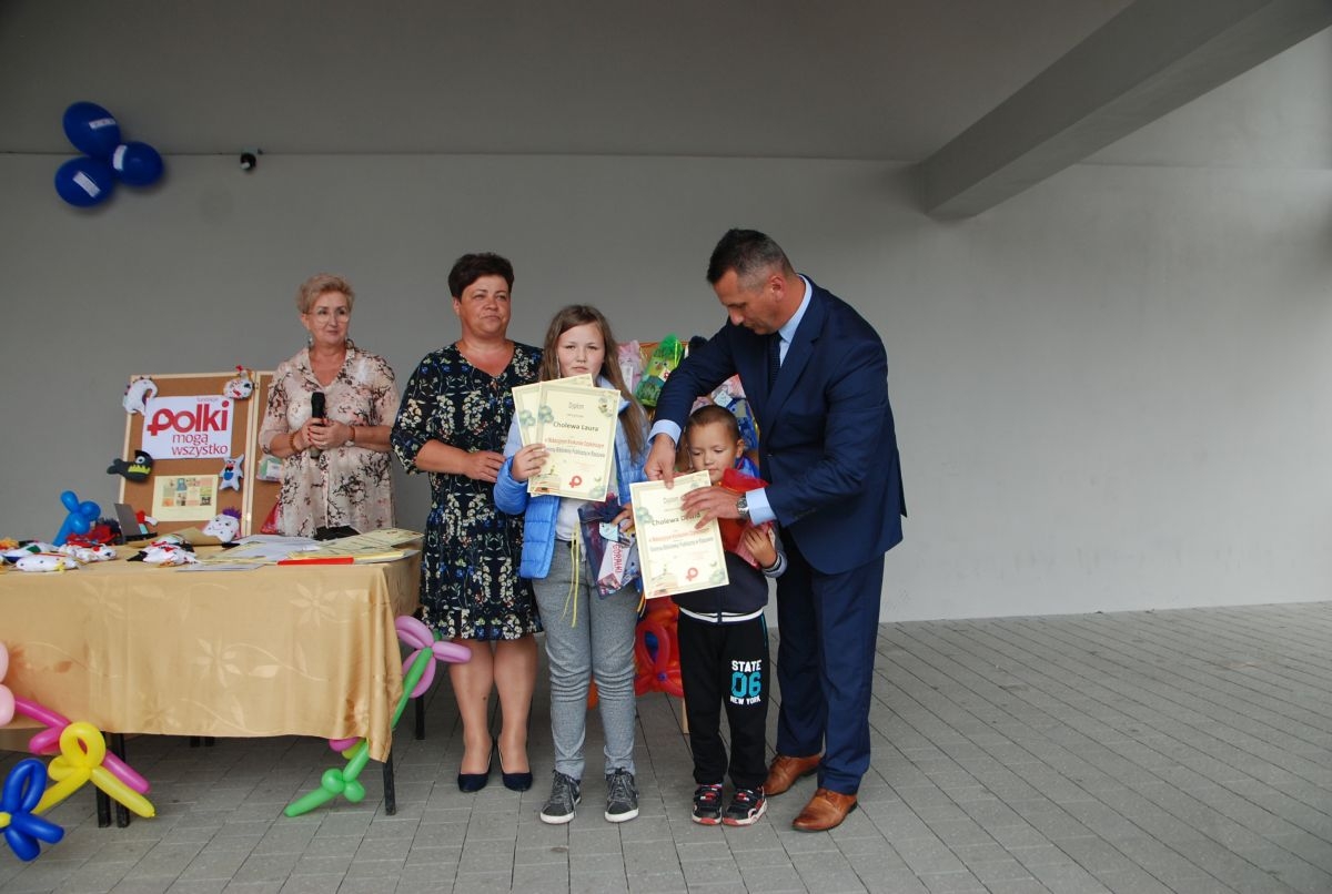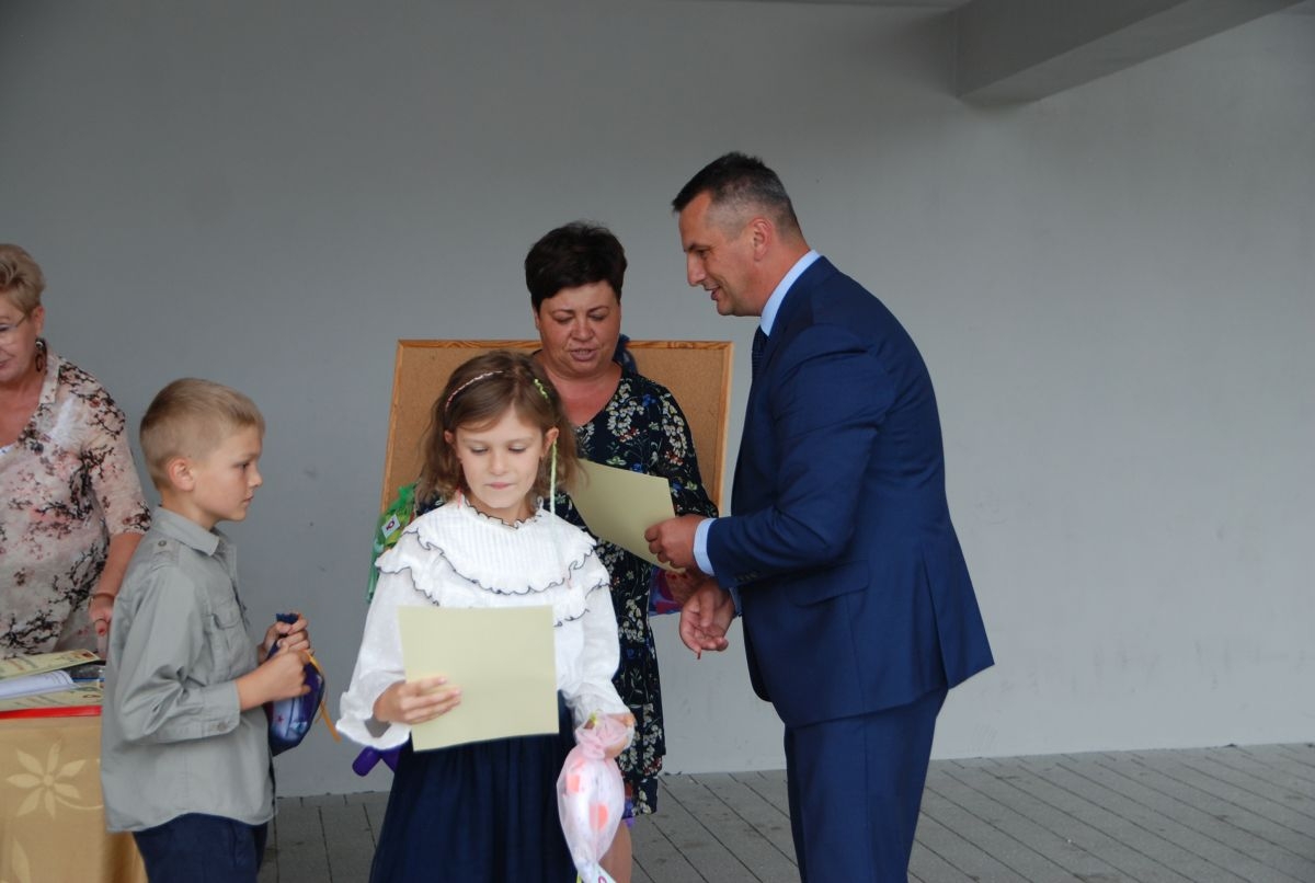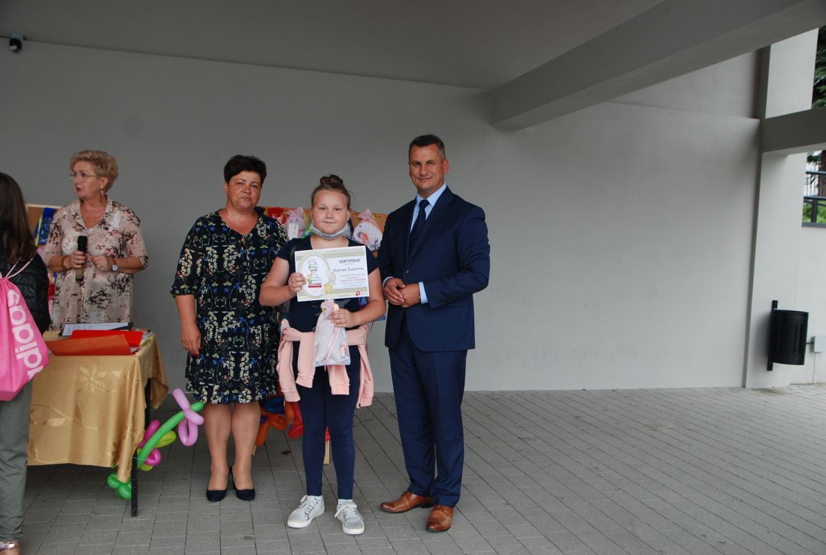 Pożegnanie wakacji a właściwie zakończenie Wakacyjnego projektu, Konkursu Czytelniczego miało miejsce pierwszego września na RYNECZKU w Rzezawie, gdzie odbyło się uroczyste wręczenie listów gratulacyjnych, certyfikatów, i dyplomów. Listy, certyfikaty oraz dyplomy wręczał Pan Mariusz Palej - Wójt Gminy Rzezawa oraz Pani Renata Prokop - Dyrektor Gminnego Centrum Kultury Czytelnictwa i Sportu w Rzezawie.