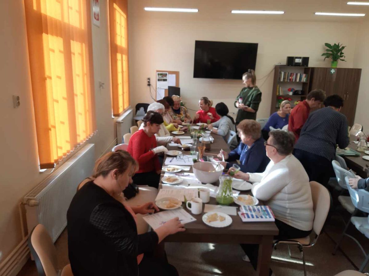 Warsztaty kulinarne i żywieniowe za każdym razem dają możliwość spotkań i integracji lokalnej społeczności. W trakcie warsztatów można porozmawiać na różne tematy, nie tylko kulinarne, wymienić się doświadczeniami i nauczyć się czegoś nowego. Zajęcia warsztatowe pomagają w byciu bardziej kreatywnym, a tym samym pomagają racjonalniej wykorzystywać posiadane w domach artykuły spożywcze. Dziękujemy prowadzącej warsztaty za organizację, zaangażowanie i poświęcony czas oraz wszystkim przybyłym za aktywne uczestnictwo, a Seniorom za życzliwe przyjęcie gości.