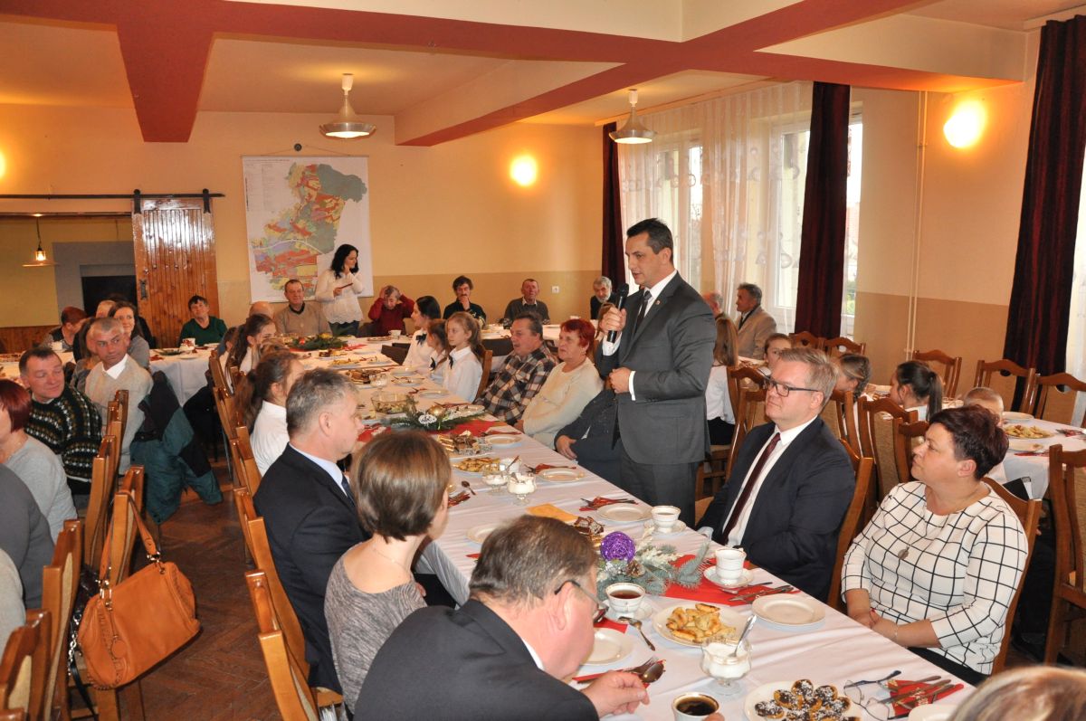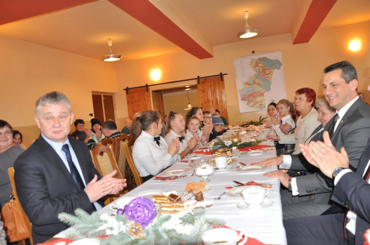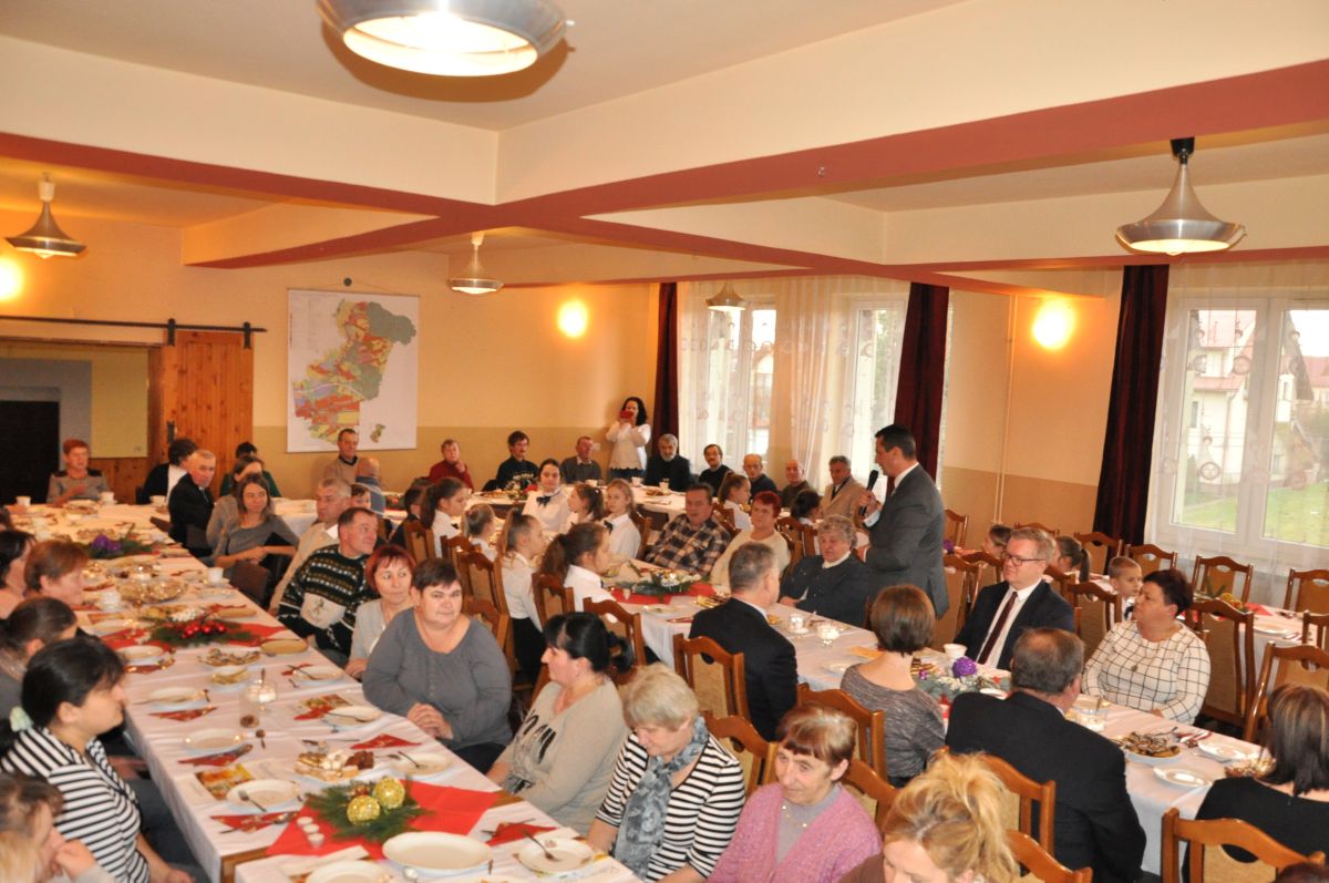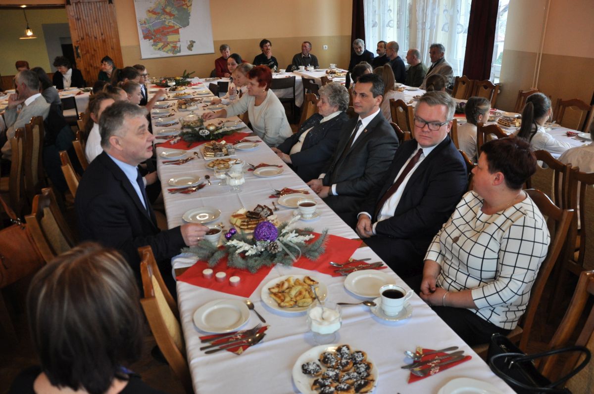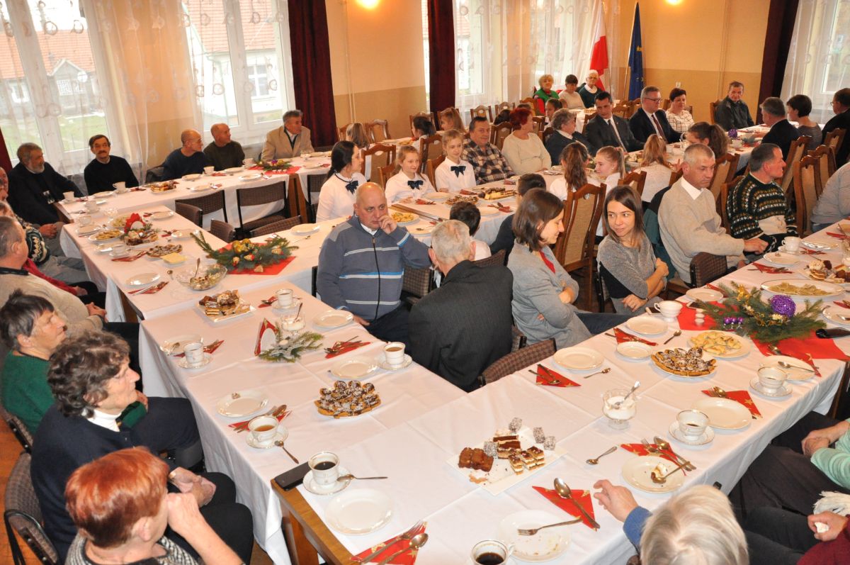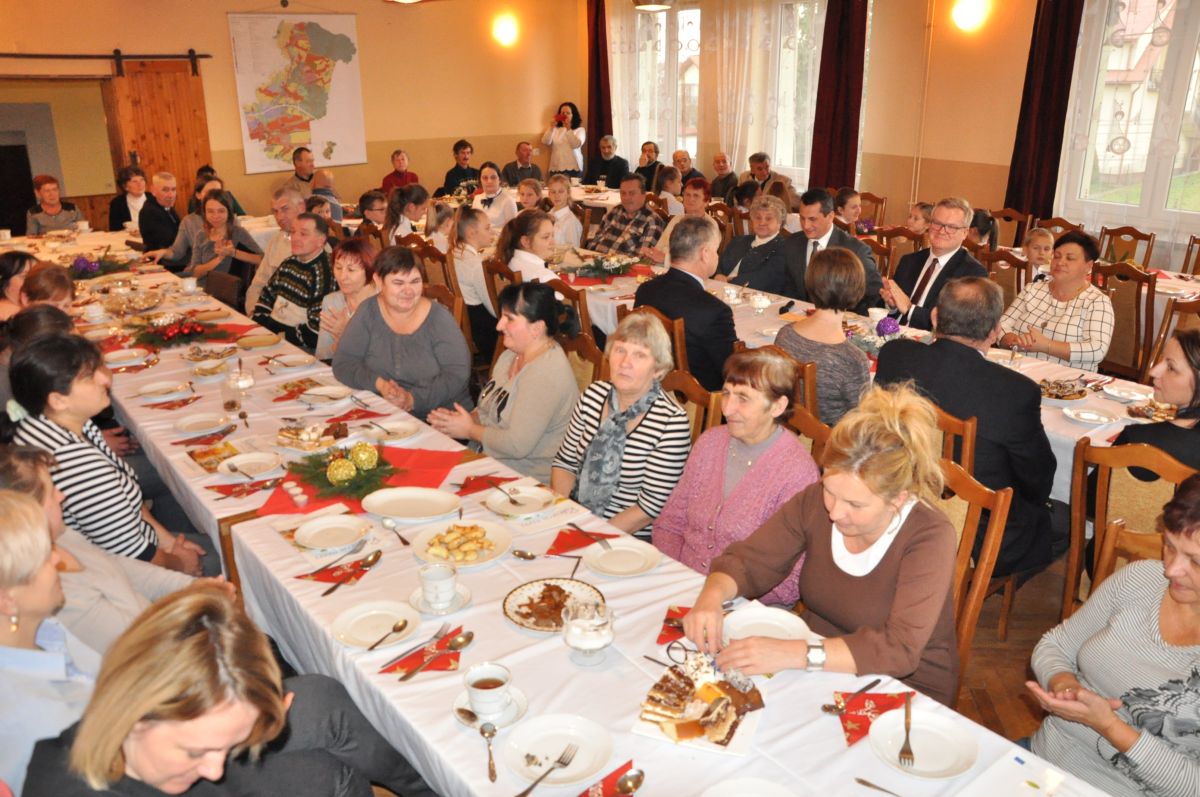 Już po raz kolejny, przy wspólnym stole świątecznym wraz z Wójtem Gminy Rzezawa P. Mariuszem Palejem, Sekretarzem Gminy Rzezawa – P. Piotrem Koczanowskim, sołtysem wsi Rzezawa – P. Józefem Zychem, dyrektorem GCKCziS – P. Renatą Prokop, pracownikami Gminnego Ośrodka Pomocy Społecznej w Rzezawie, zasiadły osoby korzystające z pomocy żywnościowej jak również osoby starsze i samotne z terenu Gminy Rzezawa .