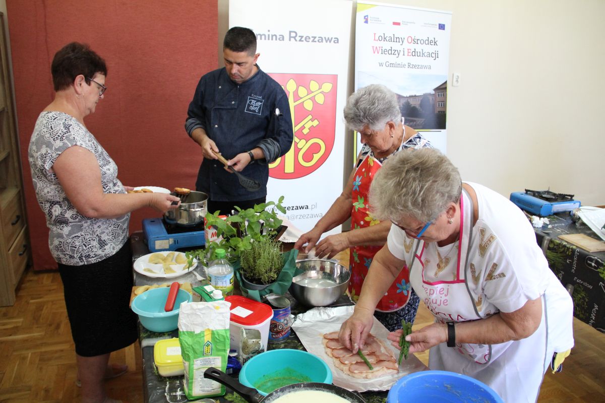 W Klubie Seniora w Rzezawie w ramach Lokalnego Ośrodka Wiedzy i Edukacji (LOWE) odbyły się warsztaty kulinarne pod okiem profesjonalnego kucharza. Dostarczyły one uczestnikom niesamowicie dużo radości.