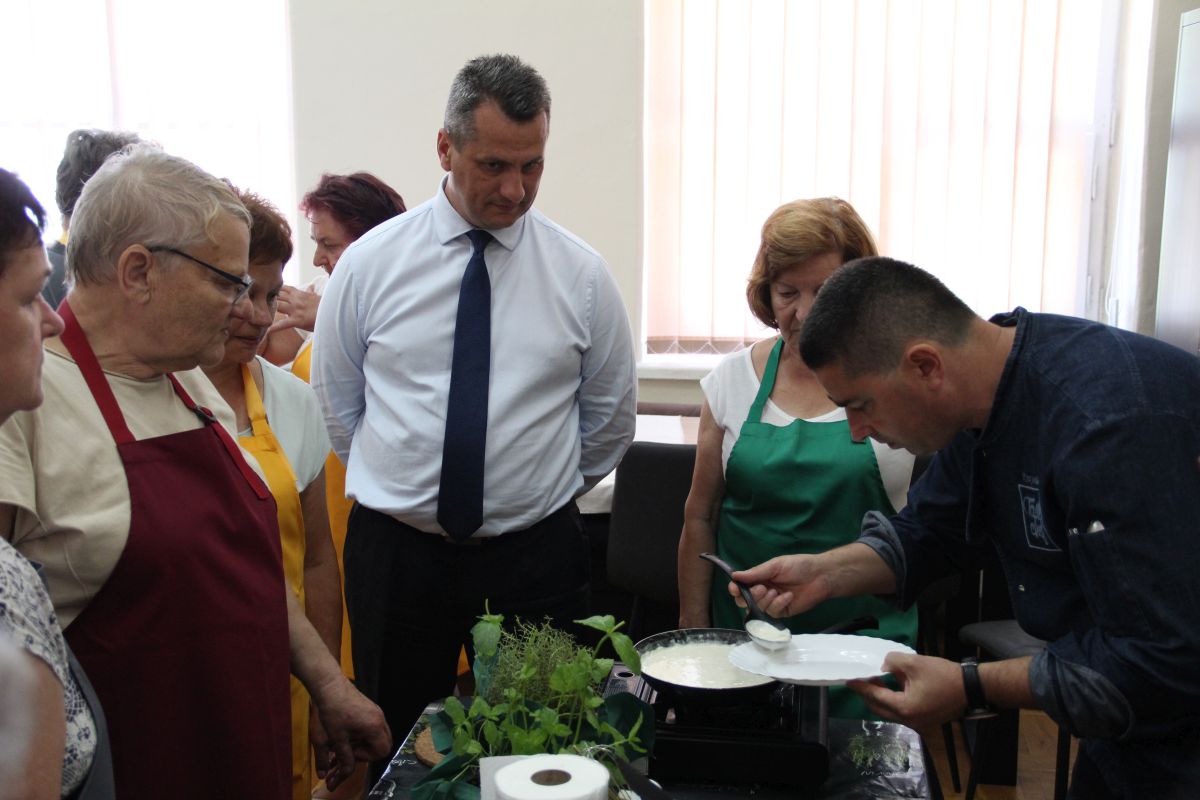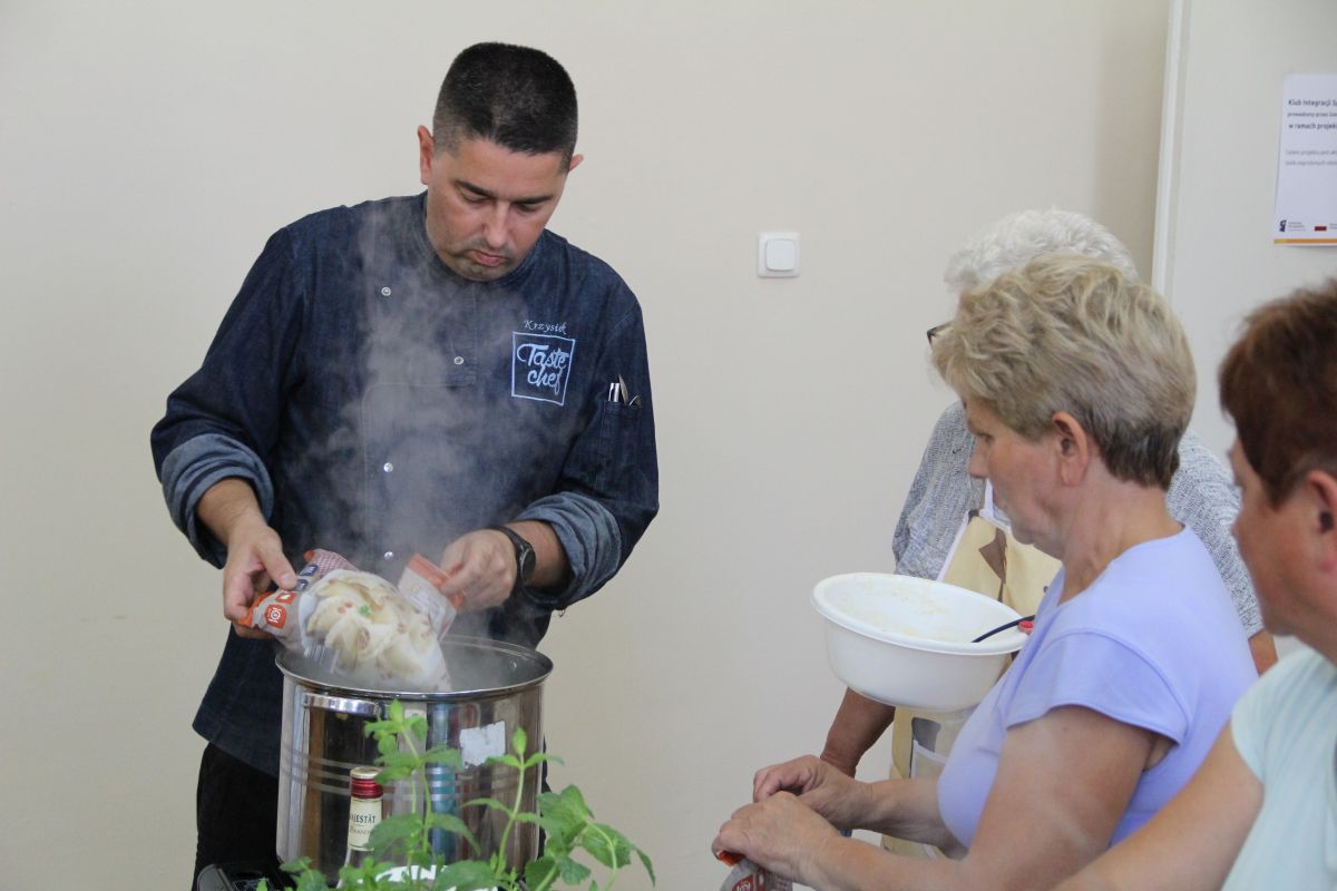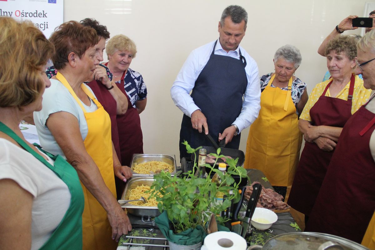 Seniorów podczas warsztatów odwiedził m.in. Wójt Gminy Rzezawa Mariusz Palej, który również miał okazję sprawdzić swoje umiejętności kulinarne. Poszło mu naprawdę dobrze. Widać, że drzemie w nim spory talent.